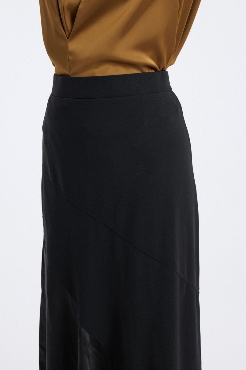An elegant midi skirt designed with asymmetrical panel detailing that creates a flowing and refined silhouette. Crafted for versatile styling, perfect for both casual and formal looks.