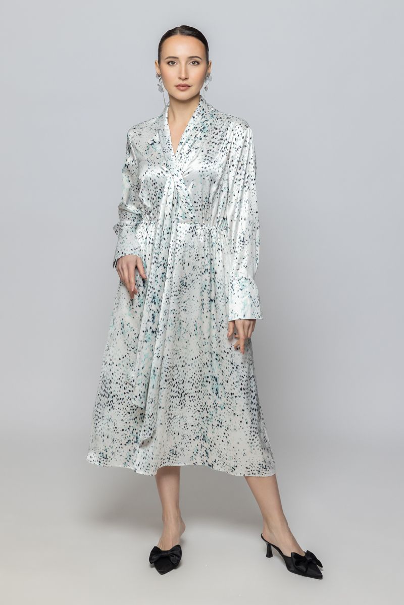 Crafted from soft and delicate satin fabric, this dress offers a luxurious feel and an elegant drape.
