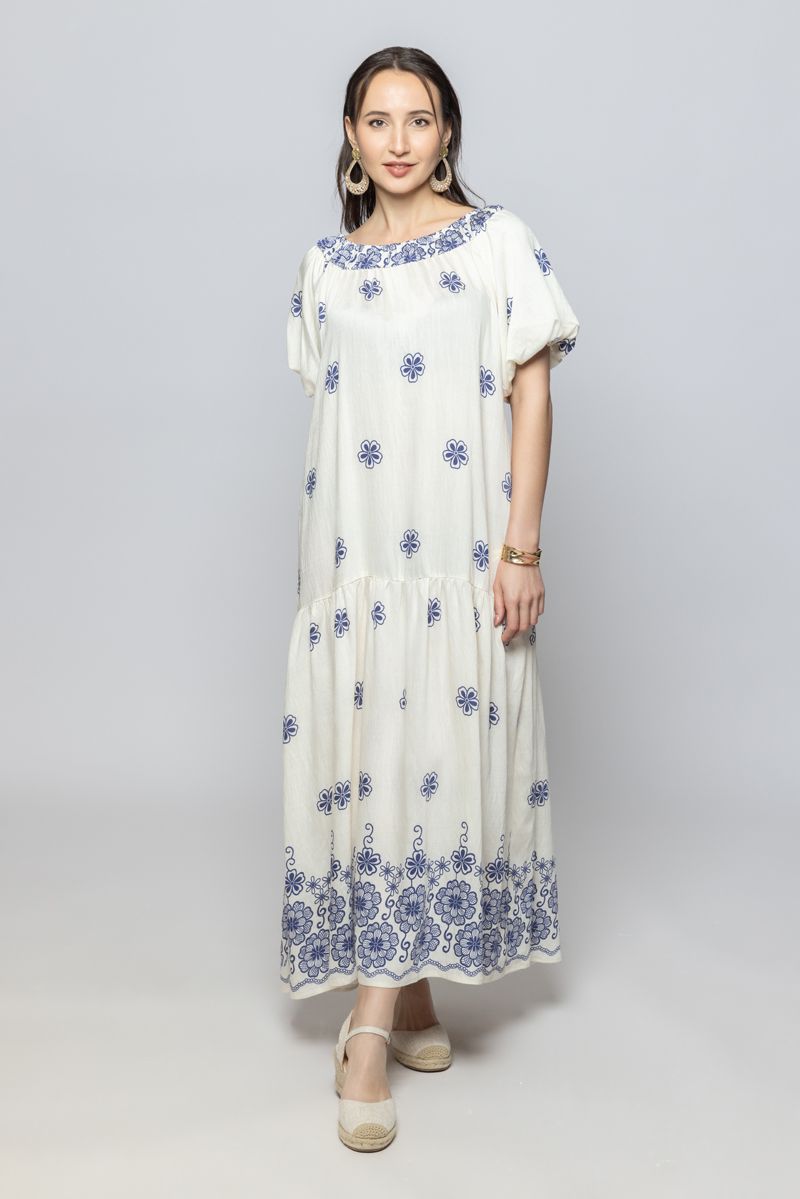 Short Sleeves Maxi Dress with Full Print Pattern