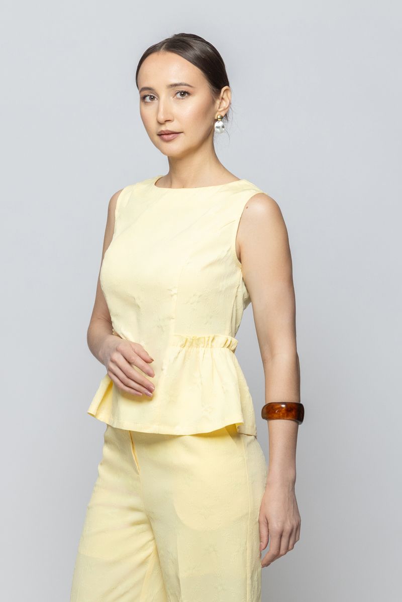Women Sleeveless Blouse with Textured Solid Colored Fabric