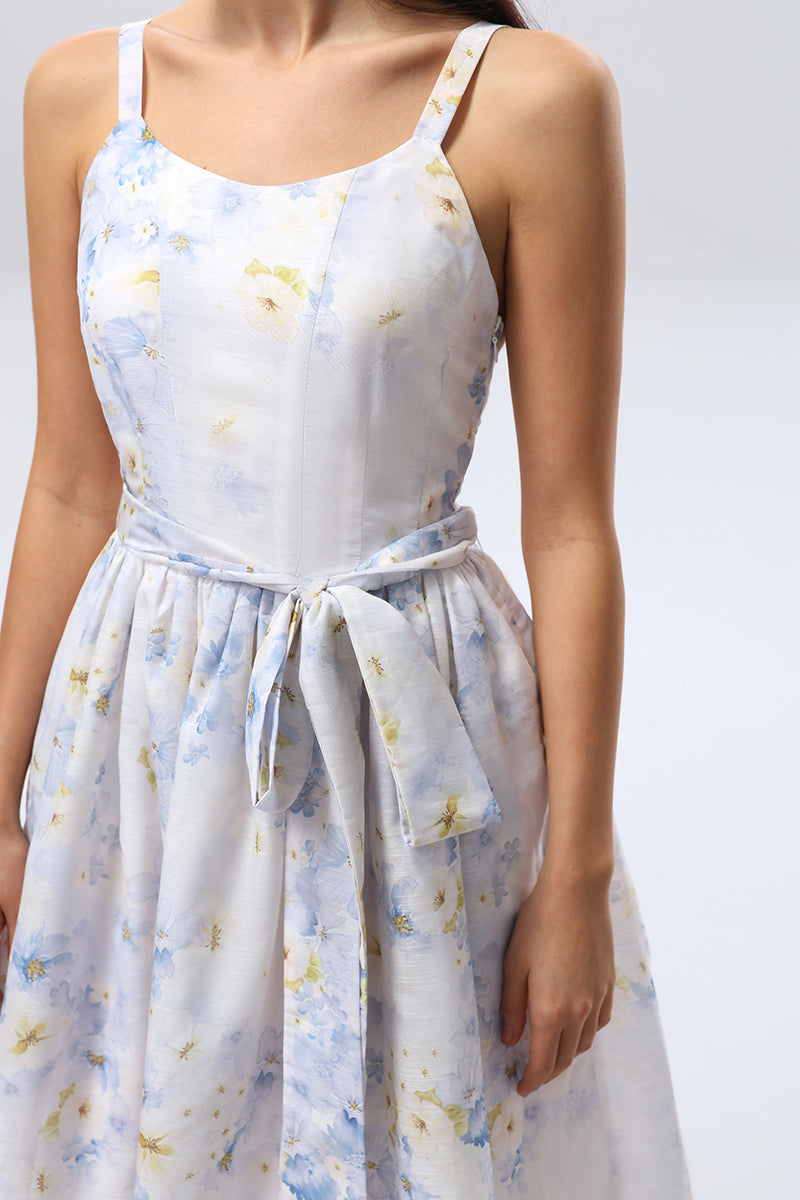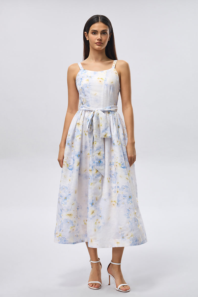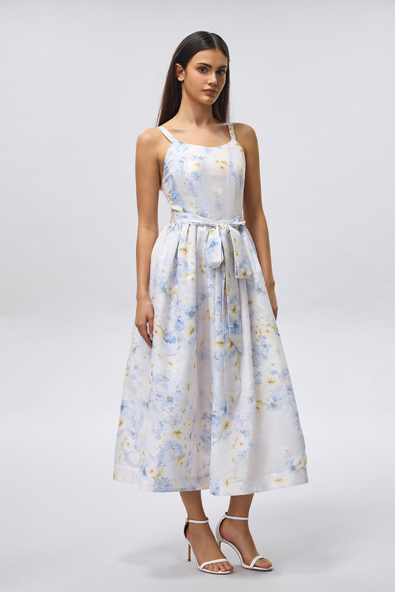 Floral Tie Waist Midi Dress
