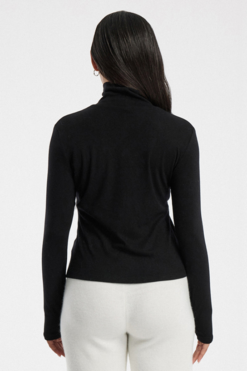 Classic long sleeve knitwear with a high turtleneck design offering warmth and a sleek fit for everyday wear.