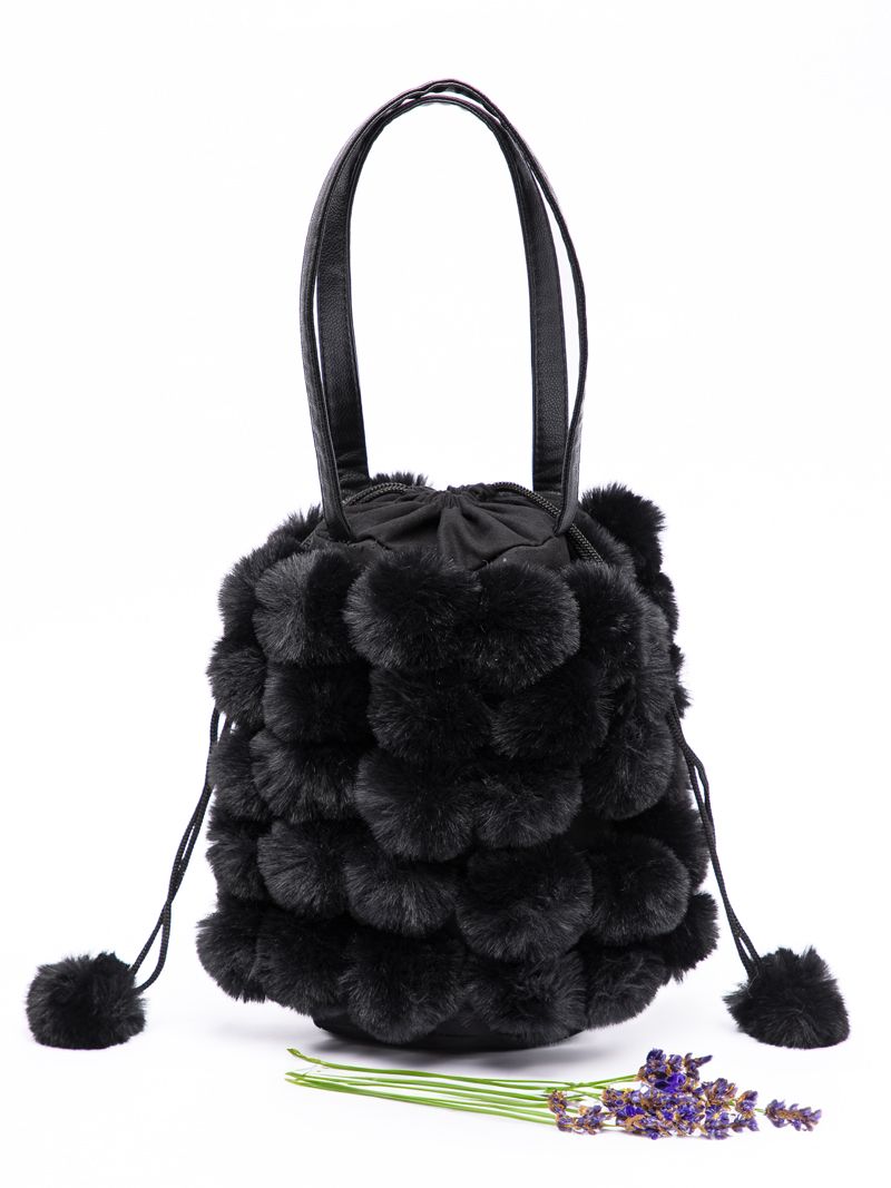 shoulder bag with pom poms