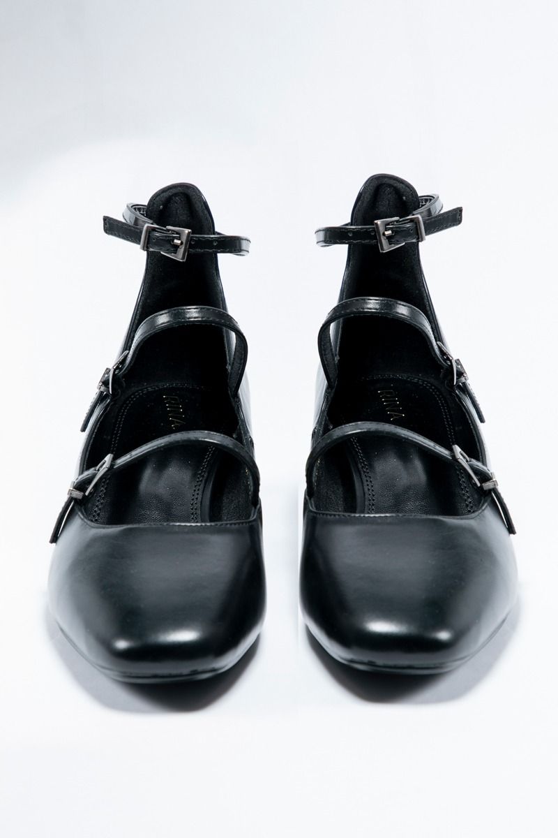 Step confidently in these solid color women's heeled shoes crafted from sleek synthetic leather. Featuring multiple buckle straps for a secure, stylish fit and a short square wide heel for added comfort and stability a perfect blend of edge and elegance for daily or dressy wear.