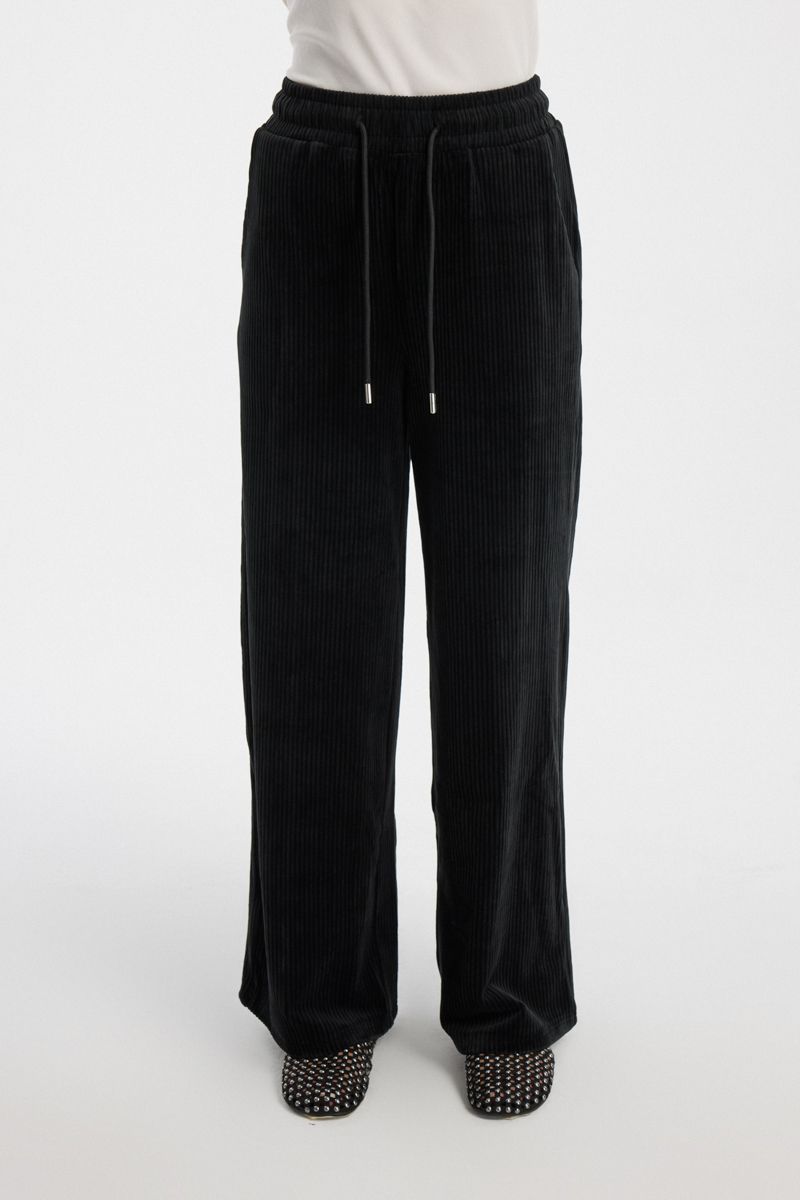 Corduroy wide leg pants featuring an elastic waistband with adjustable drawstring and side pockets Designed for comfort and casual everyday wear