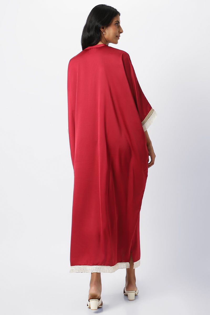 decorated with embroidery details on the front side and threads tassells details on sleeves and on the bottom side hems