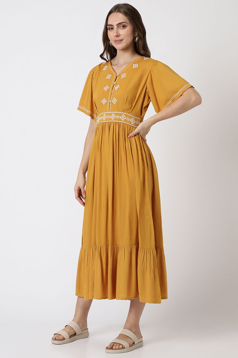decorated with embroidery detail on the front side and on sleeves and ruffled detail on bottom side