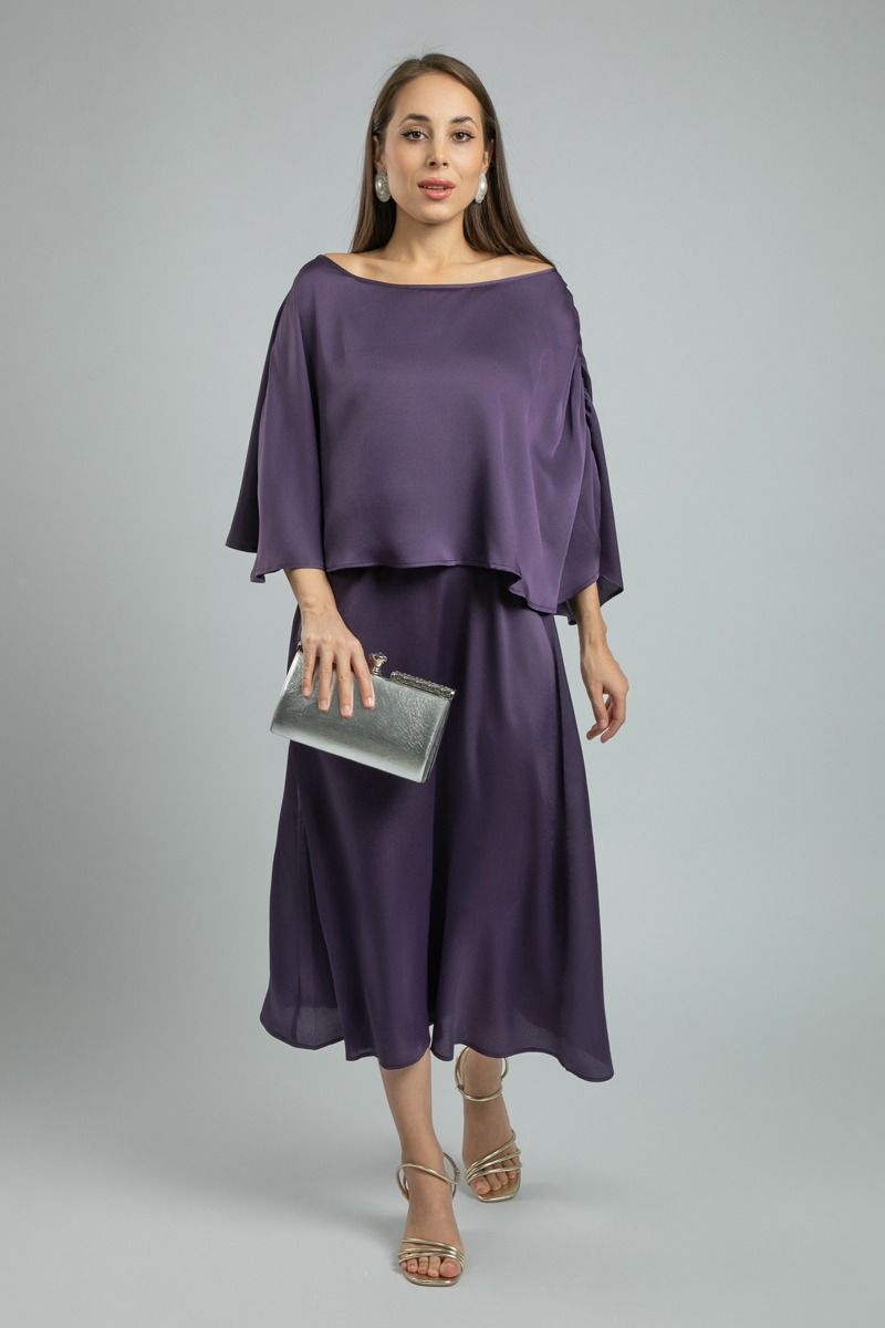 Embrace graceful elegance this Eid with our Greek-inspired one-shoulder midi dress. Made from delicate satin fabric in a solid color, it features a soft, flowing layer detail on the upper side that adds a refined, sculptural touch. A timeless silhouette for your festive moments.