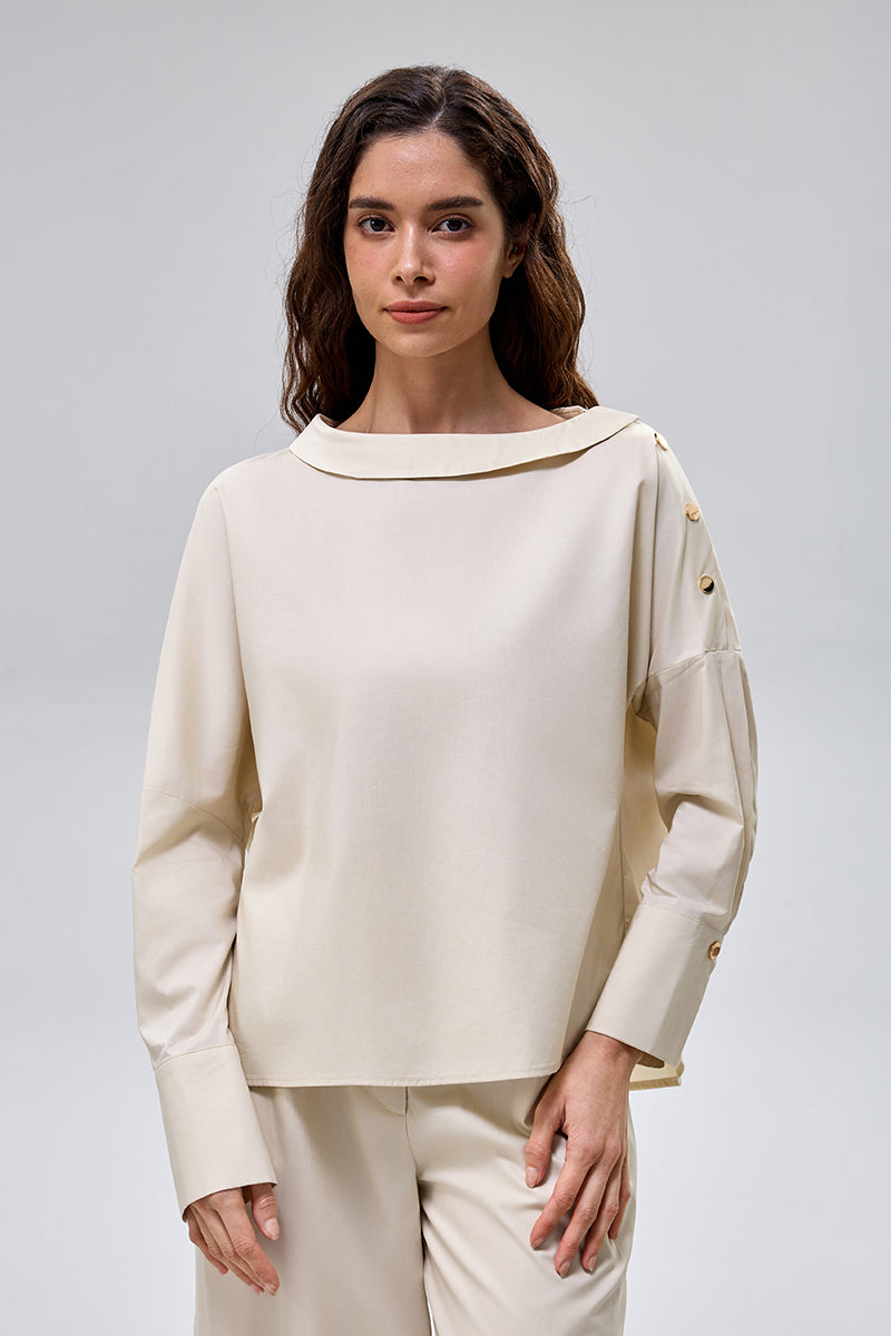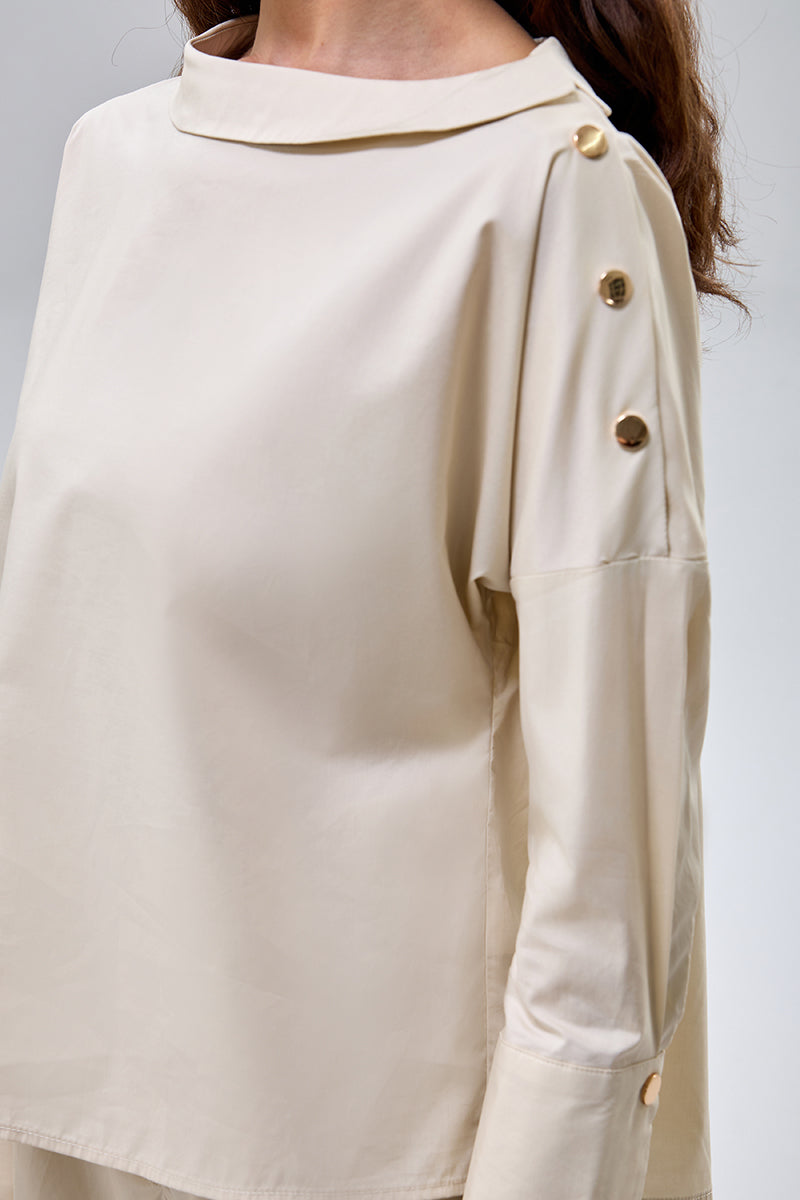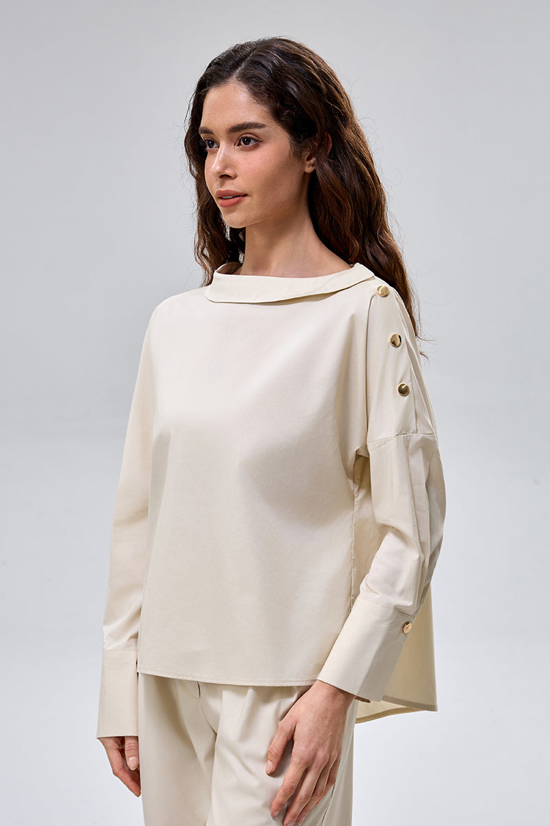 بلوزة باكمام طويلة مع ازرار جانبية