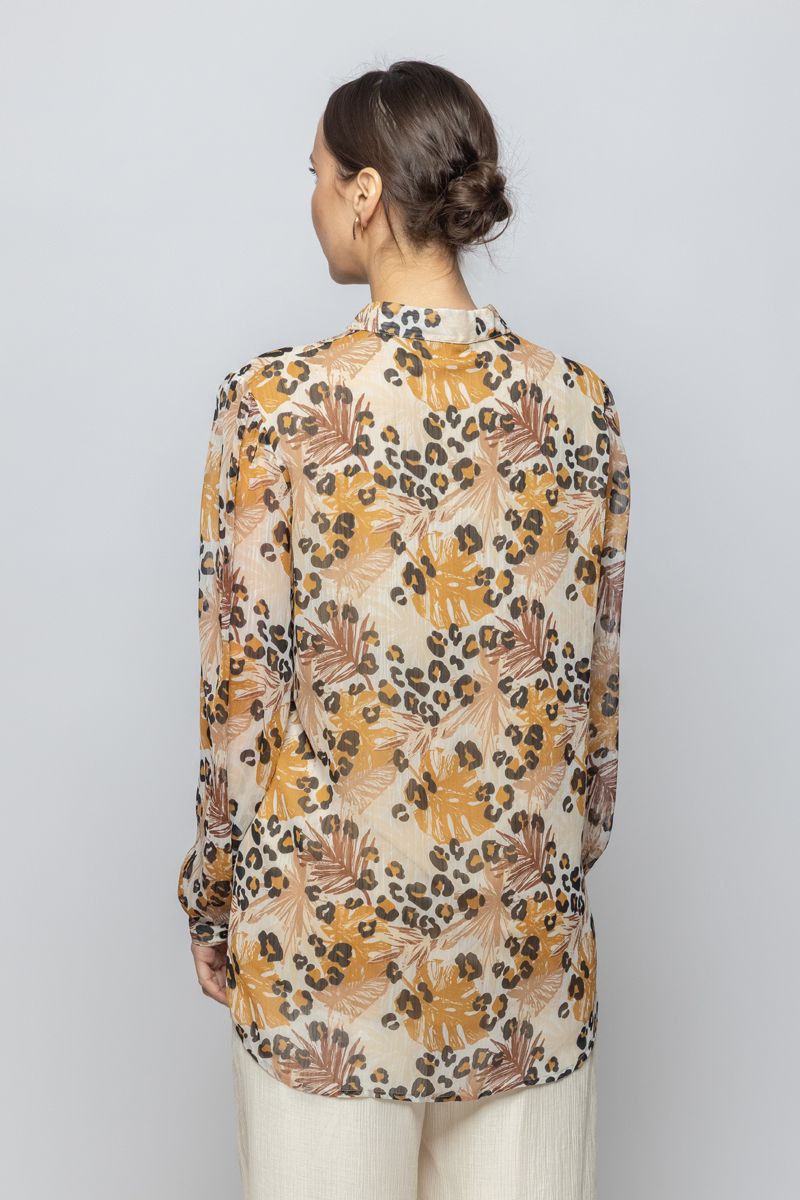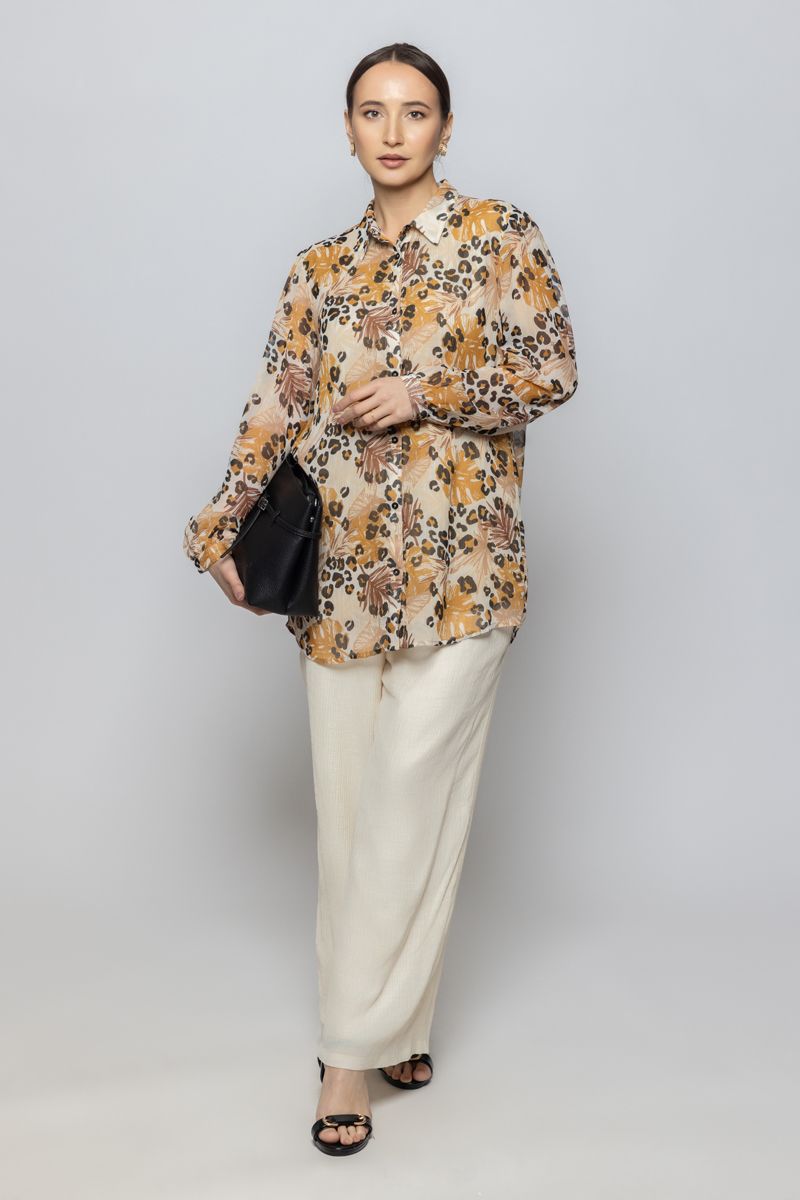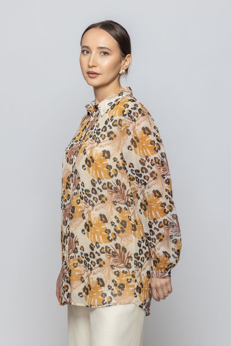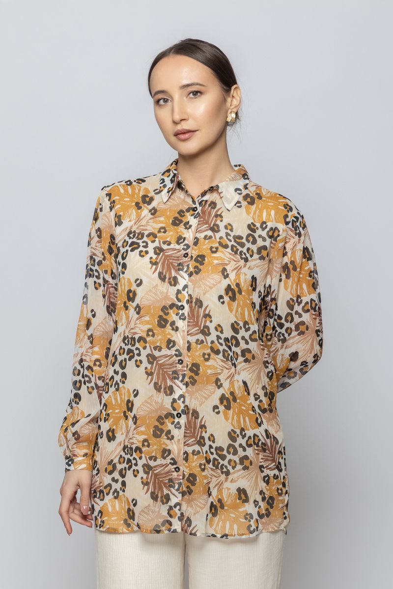 يجمع هذا القميص النسائي ذو الأكمام الطويلة بين الأسلوب الأنيق والنقشة المطبوعة الكاملة، مما يجعله إضافة مثالية إلى خزانة الملابس العصرية. يتميز القميص بأزرار للإغلاق في الجهة الأمامية وياقة كلاسيكية تضفي تصميمًا خالدًا، بينما توفر الأكمام الطويلة تغطية إضافية لأيام الطقس الأكثر برودة. مثالي للمناسبات غير الرسمية ونصف الرسمية على حد سواء، يضيف هذا القميص لمسة من الأناقة والتميز إلى مظهركِ، مما يجعله قطعة مرنة لمختلف المناسبات.