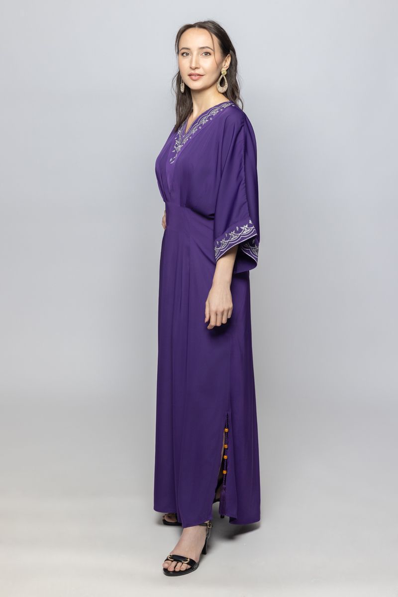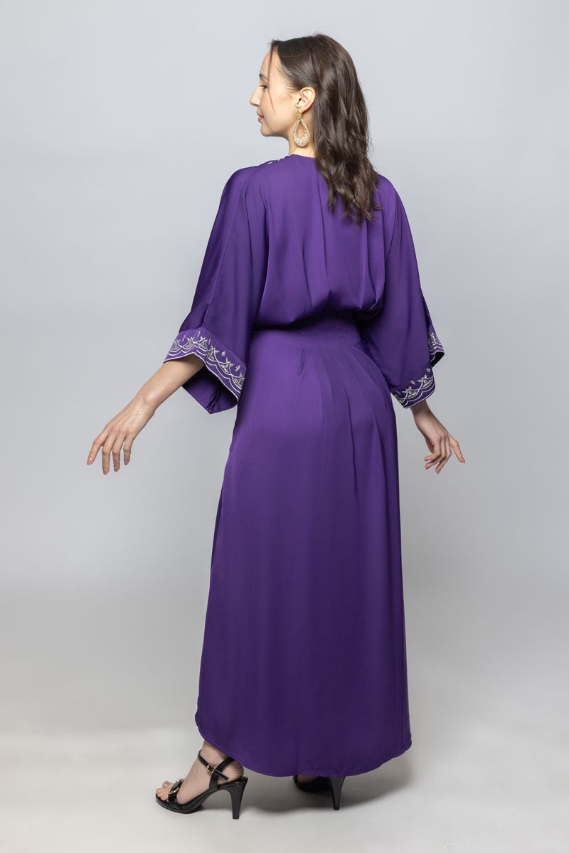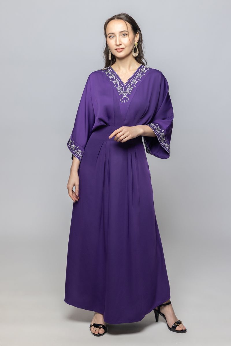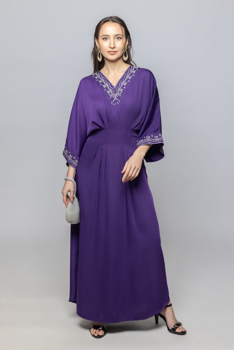 يتميز هذا الفستان الماكسي ذو الأكمام الثلاث أرباع من مجموعة عيد بتصميم أنيق يمنحك إطلالة رائعة في المناسبات الخاصة.