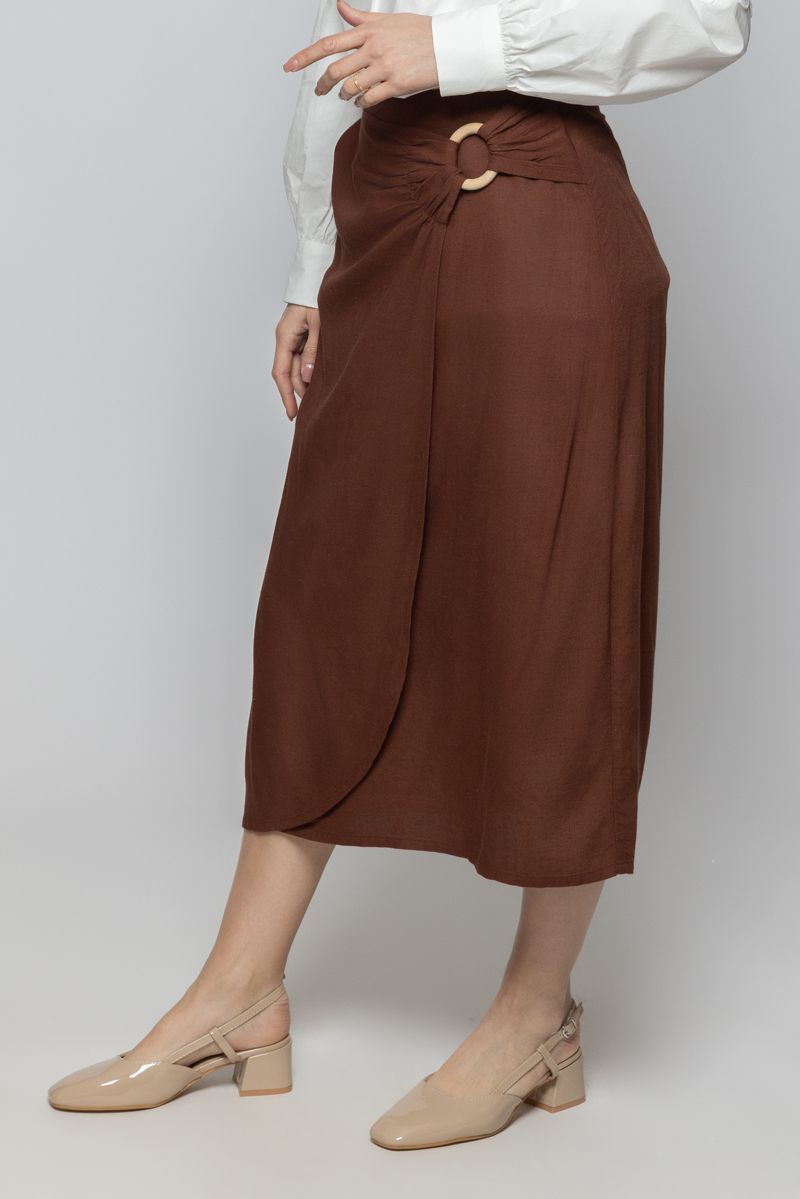 تعتبر هذه التنورة الميدي النسائية بلون موحد من الأساسيات التي لا غنى عنها في خزانة الملابس، حيث تتميز بتصميم أنيق بنمط التفاف يعزز من شكل الجسم. يتم تعزيز التصميم بتفاصيل حلقة على الجزء العلوي، مما يضيف لمسة عصرية وأنيقة للقطعة. مثالية للمناسبات غير الرسمية أو شبه الرسمية، توفر هذه التنورة تنوعًا وأناقة، مما يجعلها خيارًا سهلًا لإطلالات متعددة.