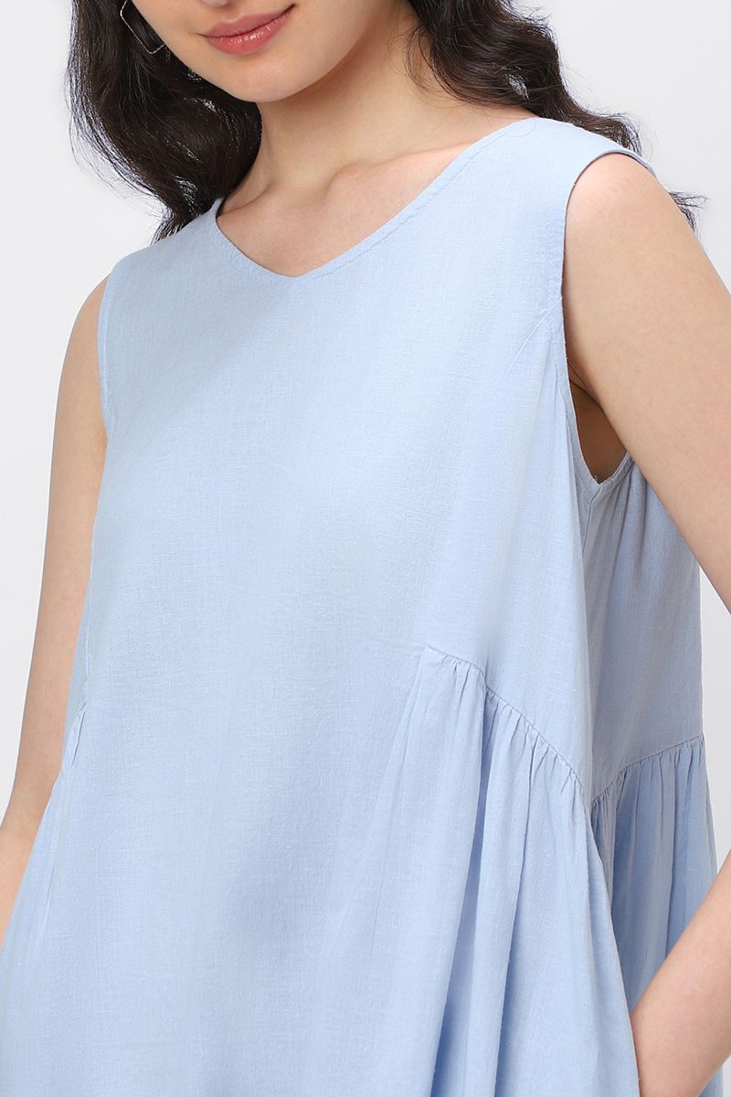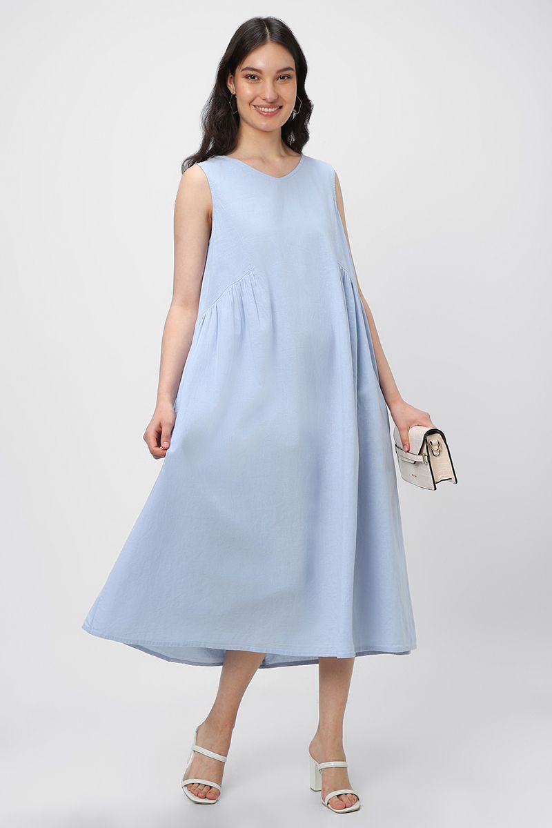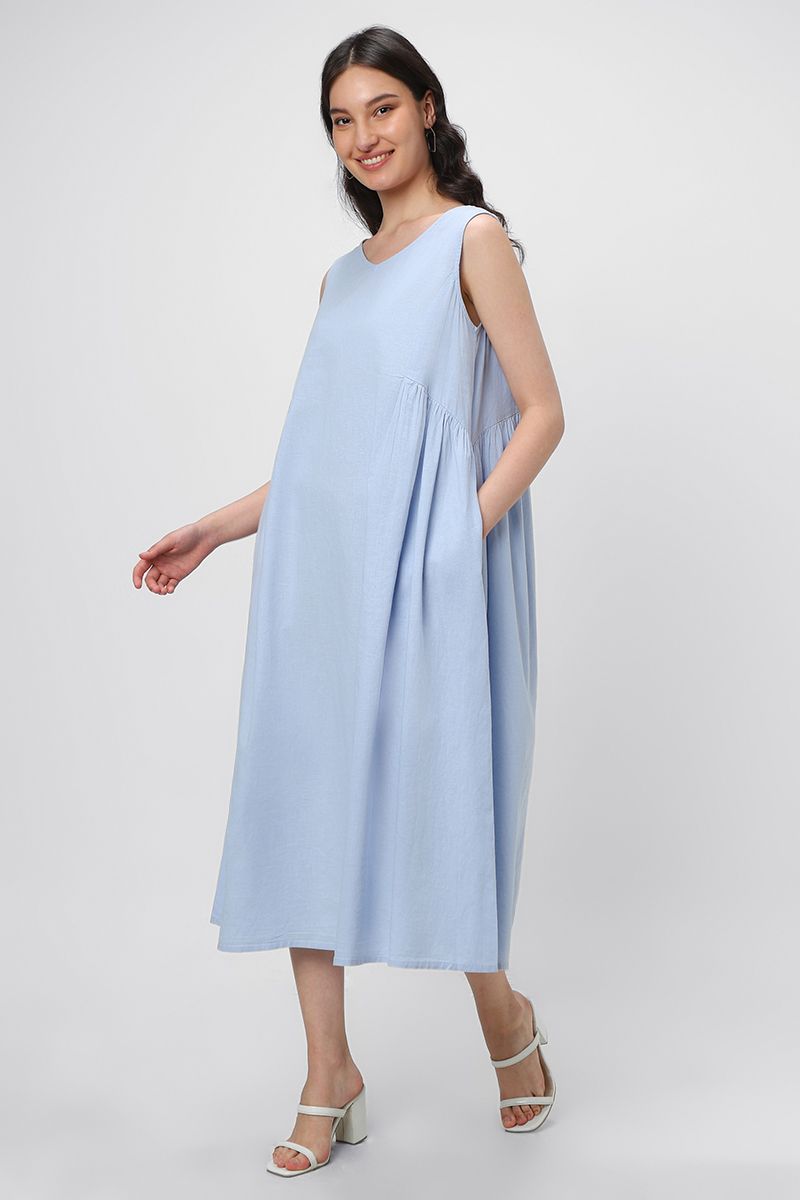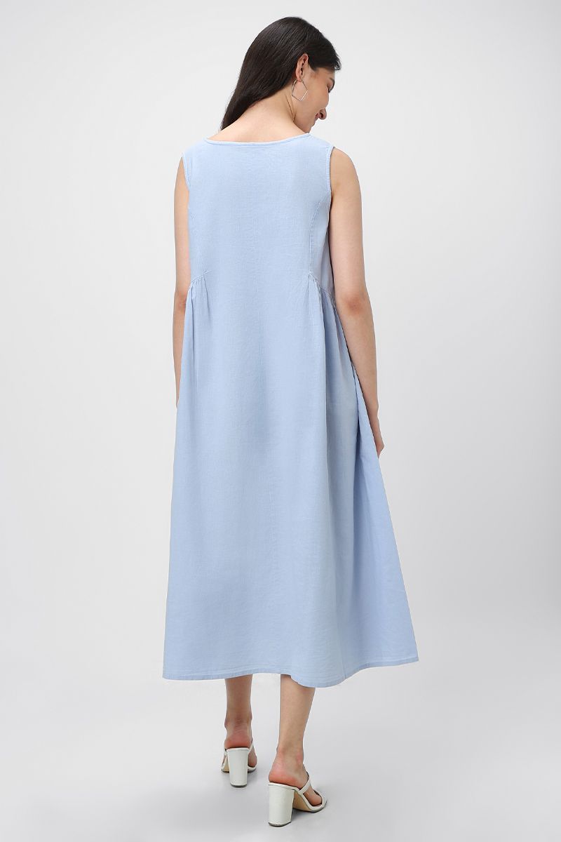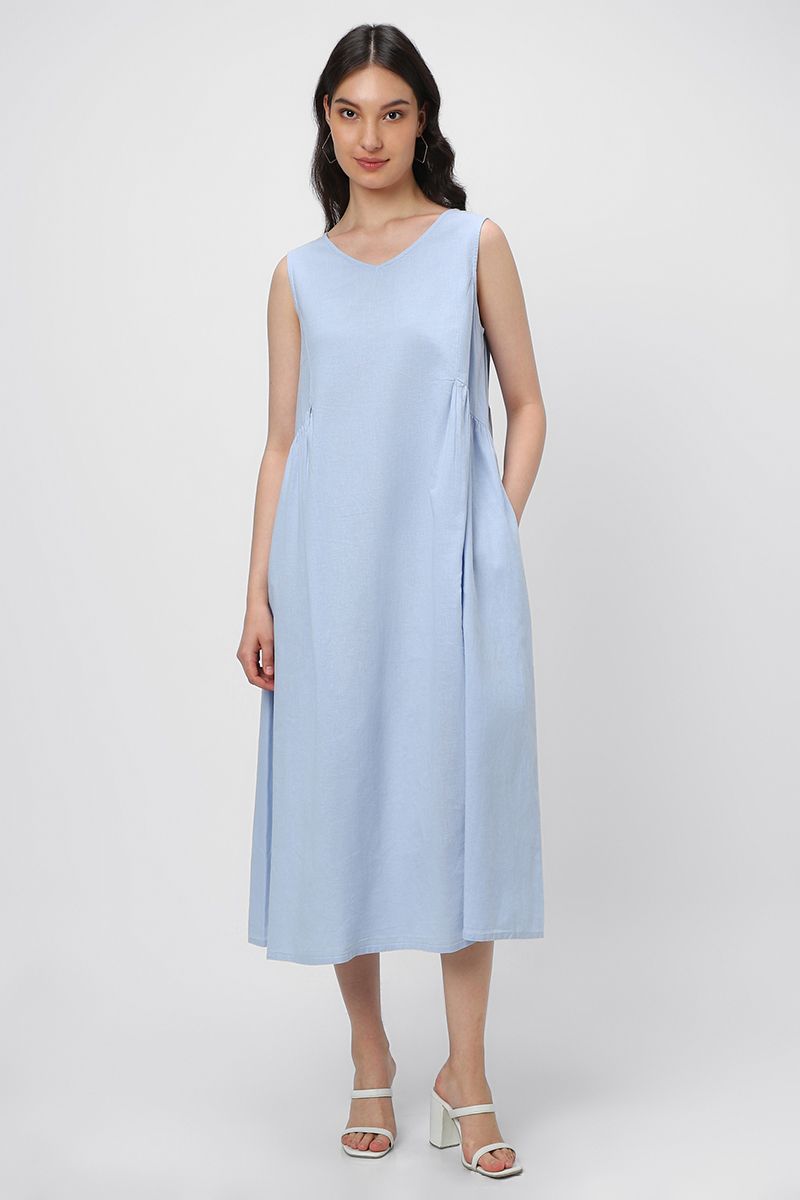 فستان نسائي كاجوال تحت الركبة بدون أكمام