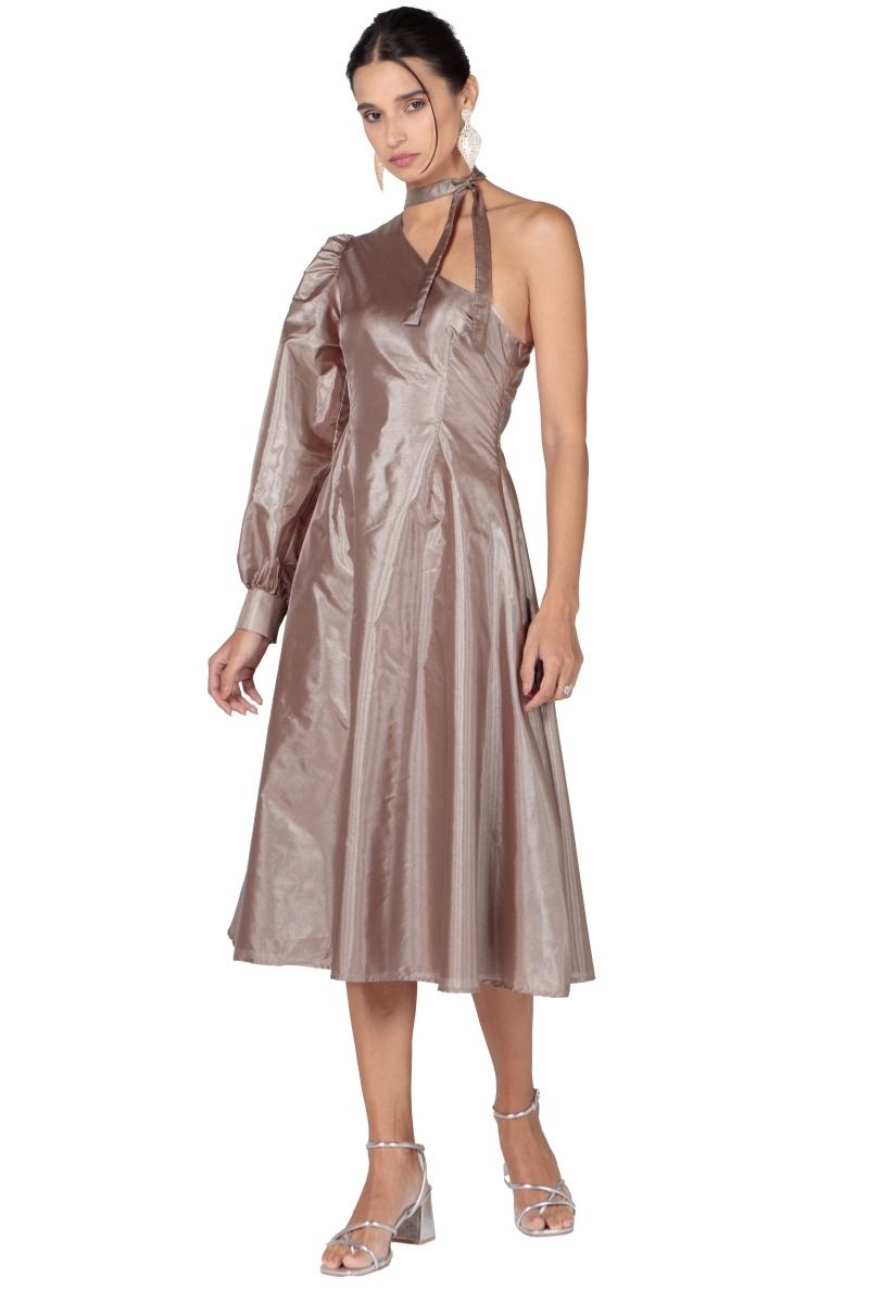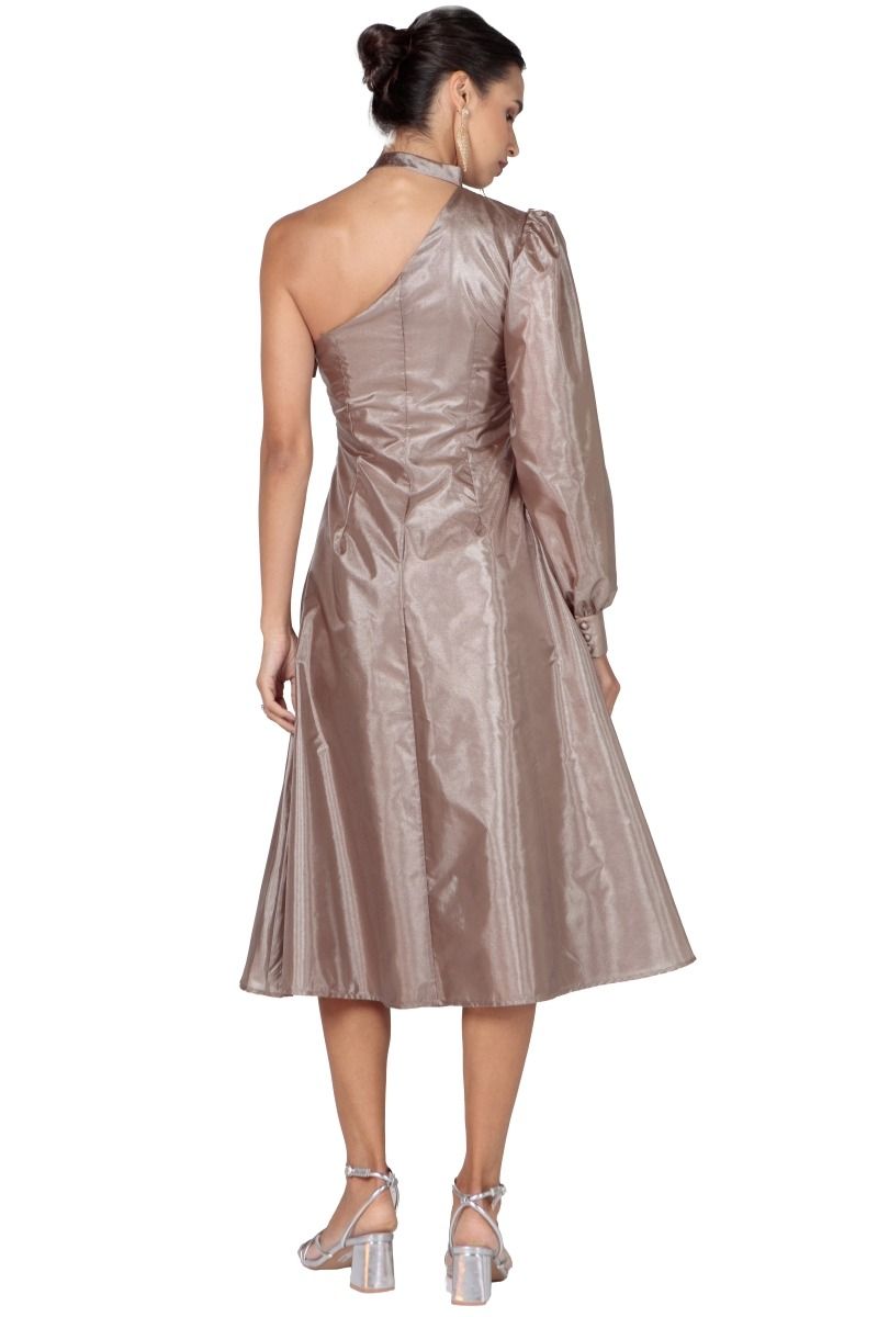 فستان نسائي طول الركبة بكتف مكشوف وكم طويل