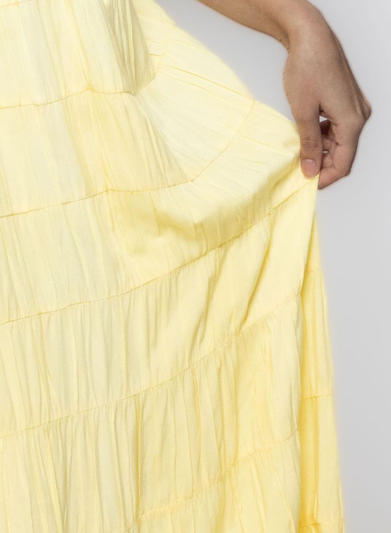 مع تصميمه الانسيابي من القماش الخفيف، يوفر الفستان إطلالة مميزة ومريحة في الأجواء الحارة. يأتي الفستان مع إغلاق بزر في الخلف، مما يضيف لمسة من التفاصيل ويجعله سهل الارتداء مع الحفاظ على مظهر أنيق.