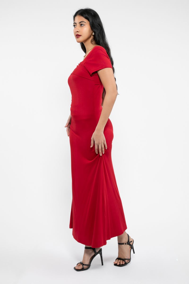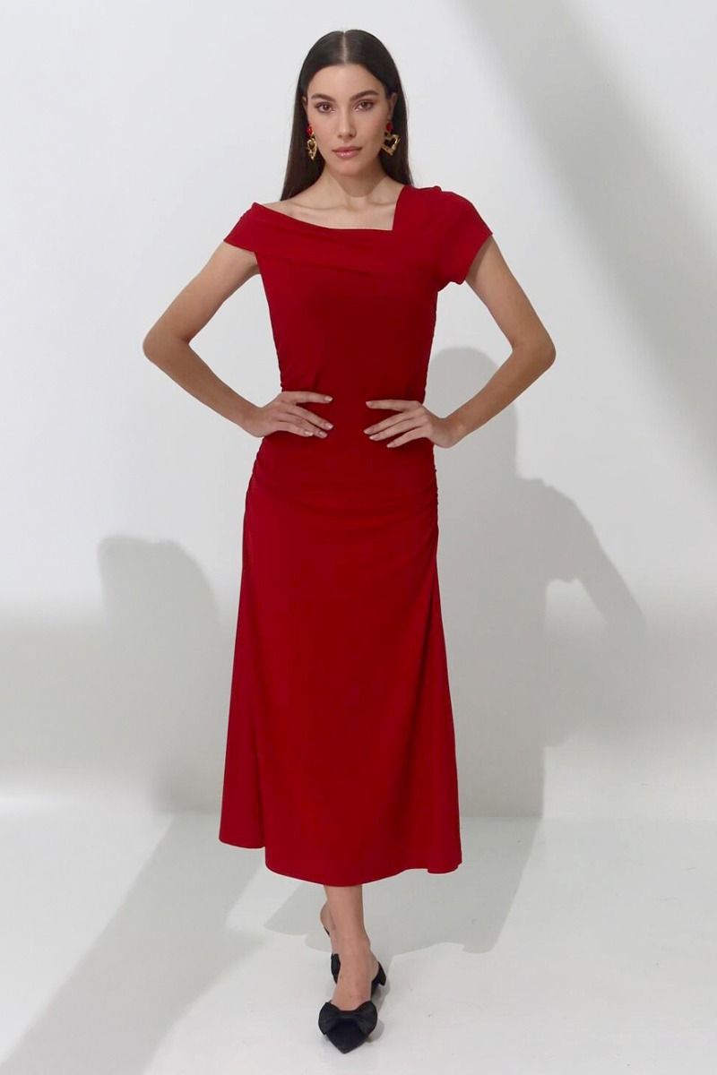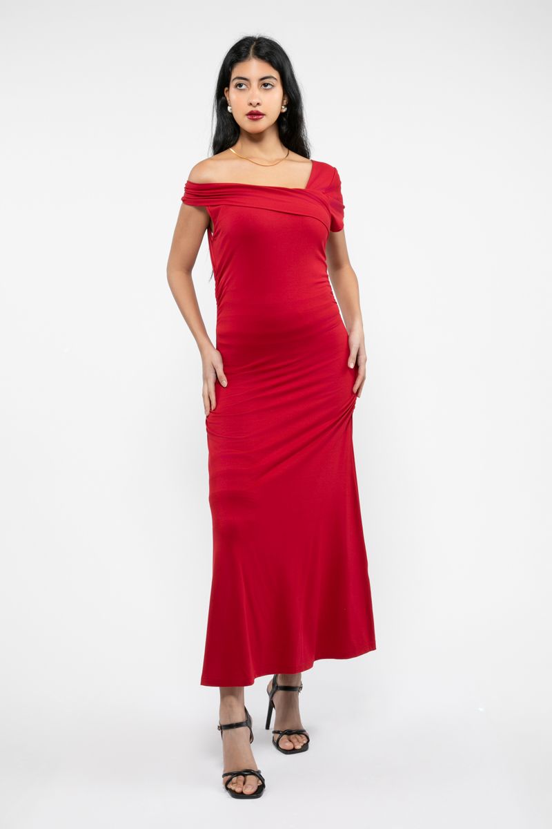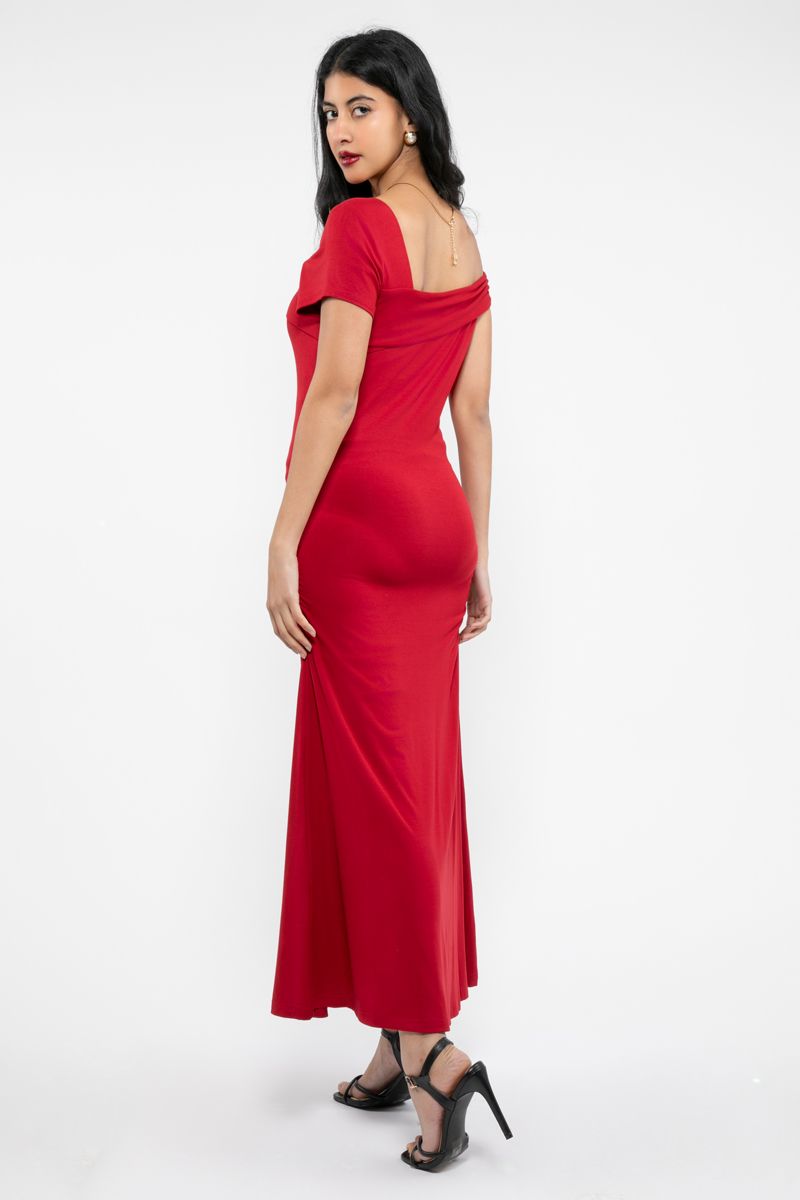 فستان نسائي ماكسي بكتف مكشوف وكم قصير