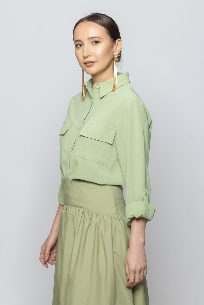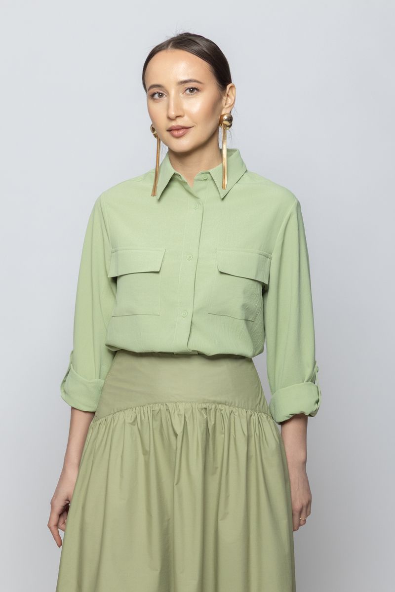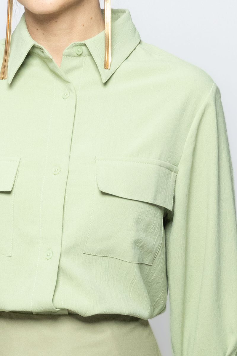 ارتقي بإطلالتك اليومية مع هذا القميص النسائي المصنوع من قماش ناعم ورقيق. يتميز بتصميم بلون سادة أنيق، مع جيوب أمامية بغطاء تضيف لمسة عملية وأسلوباً عصرياً. يأتي القميص بزر إغلاق أمامي وياقة كلاسيكية تضفي مظهراً راقياً. مثالي للإطلالات الكاجوال أو لاعتماده كقطعة أساسية في تنسيقاتك الأنيقة، حيث يجمع بين الراحة والأناقة بانسجام.