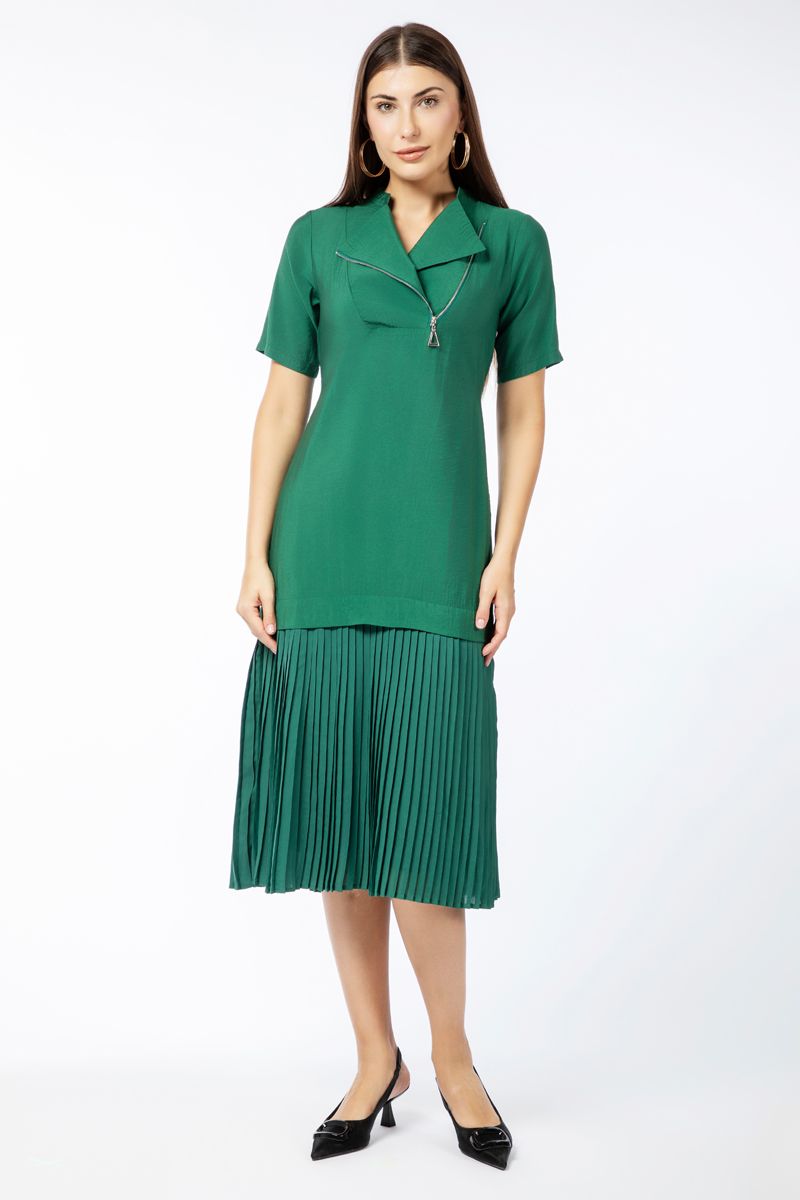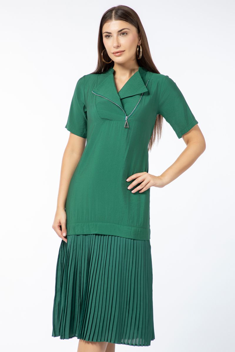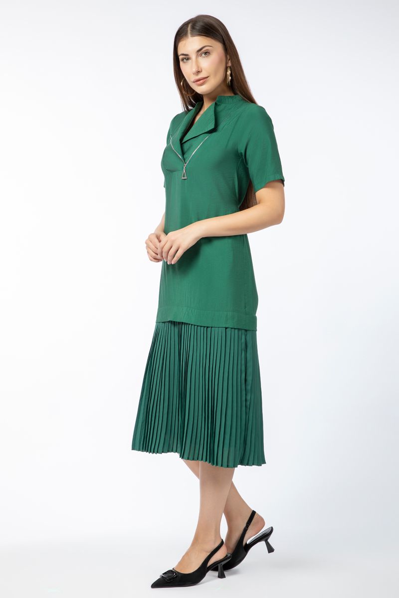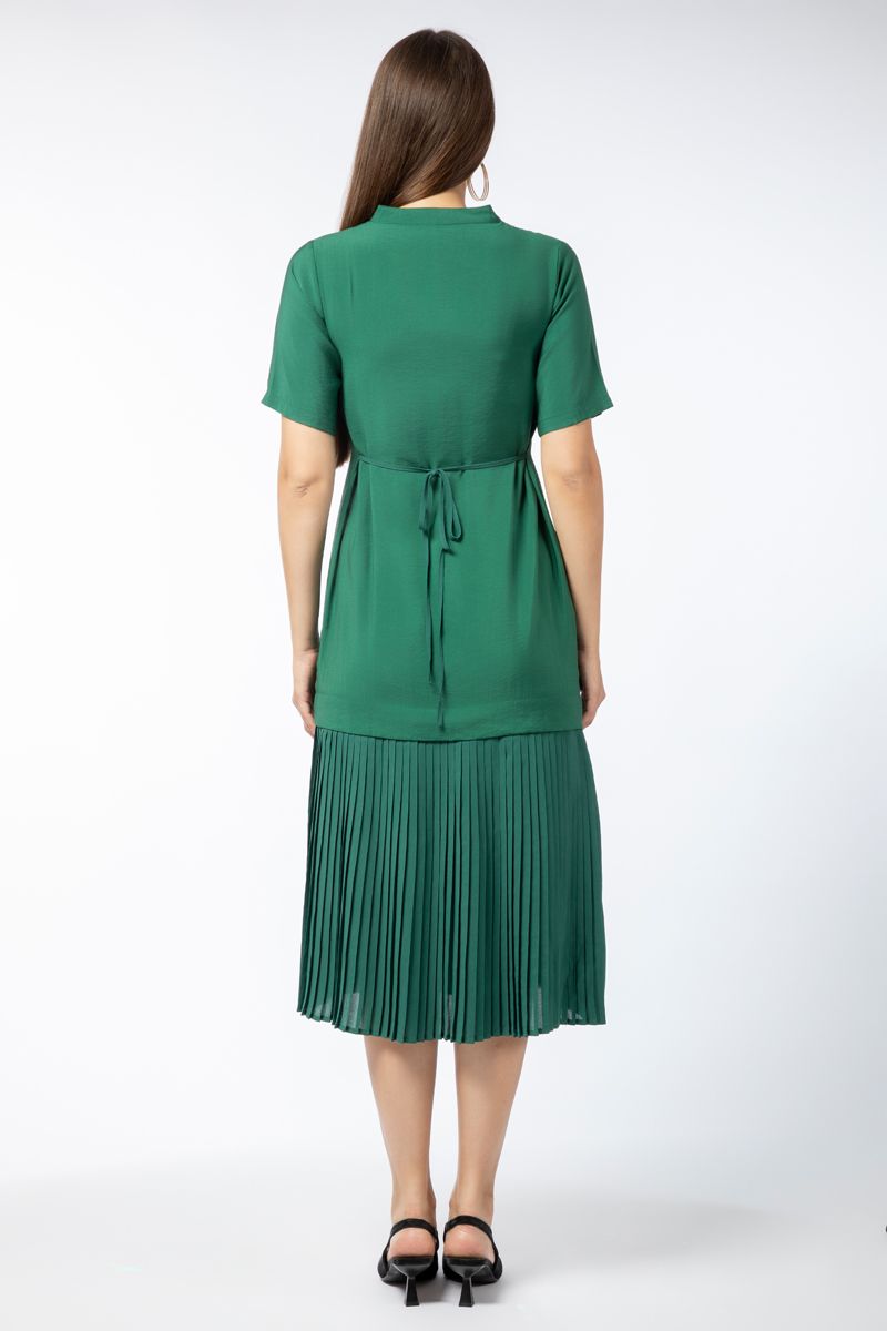 فستان نسائي متباين الخامة بتفاصيل كسرات