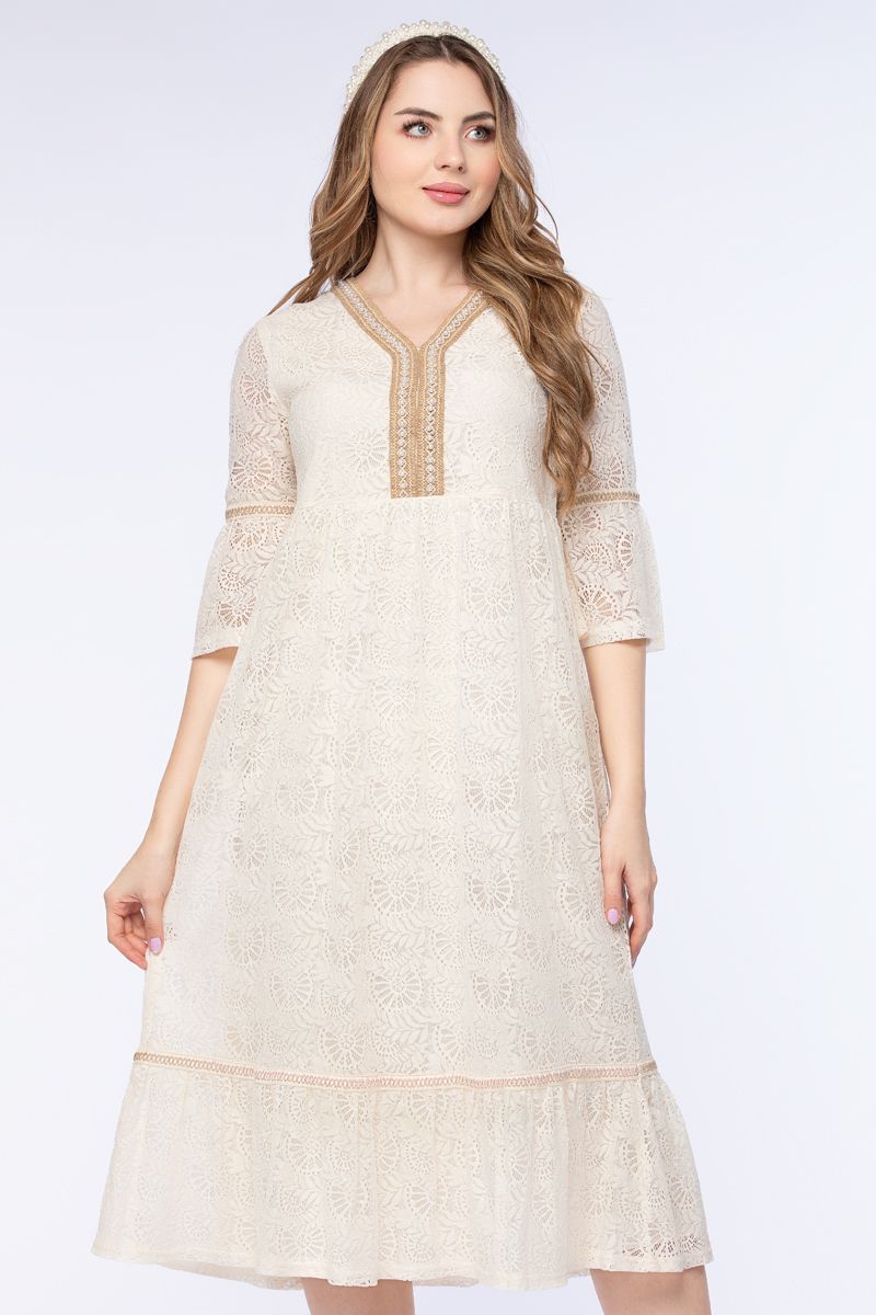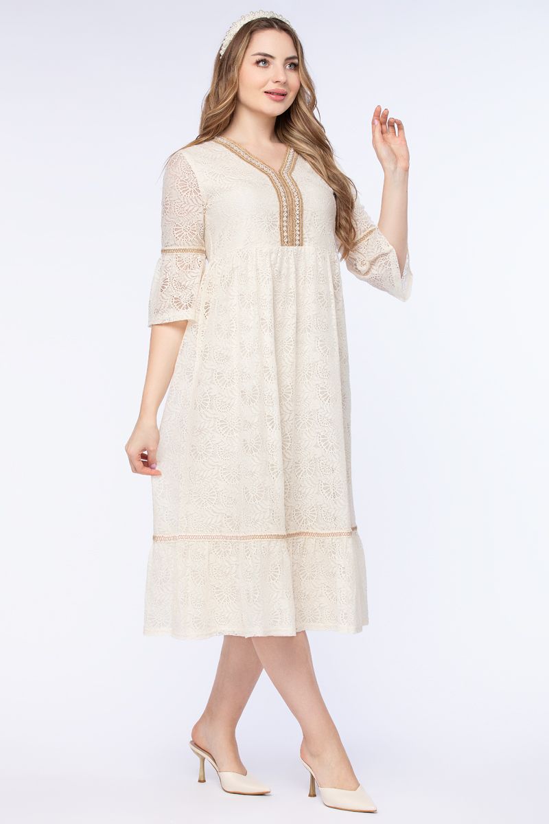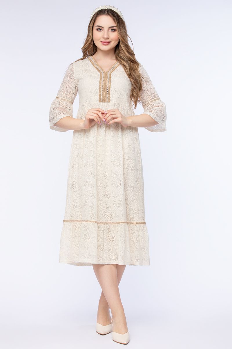 فستان نسائي تحت الركبة بأكمام ثلاثة أرباع