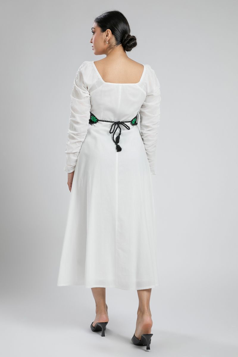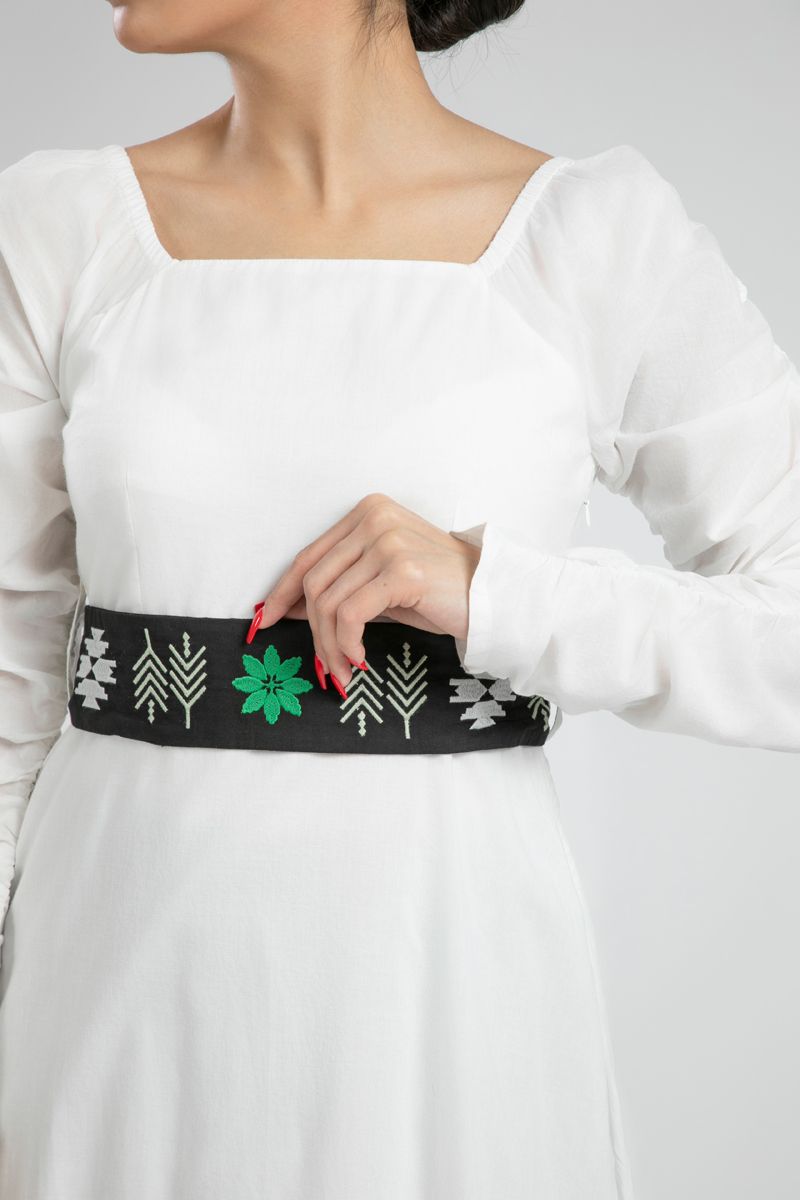 فستان طويل واسع مع حزام خصر مطرز