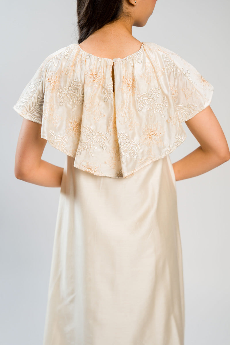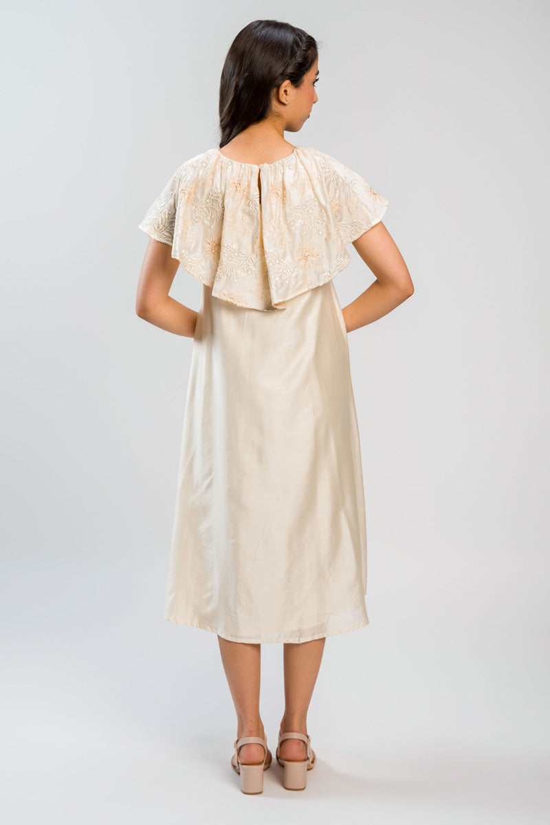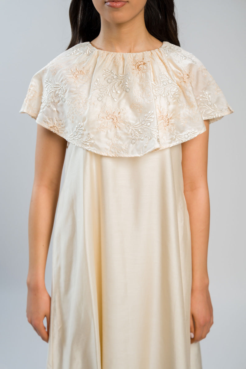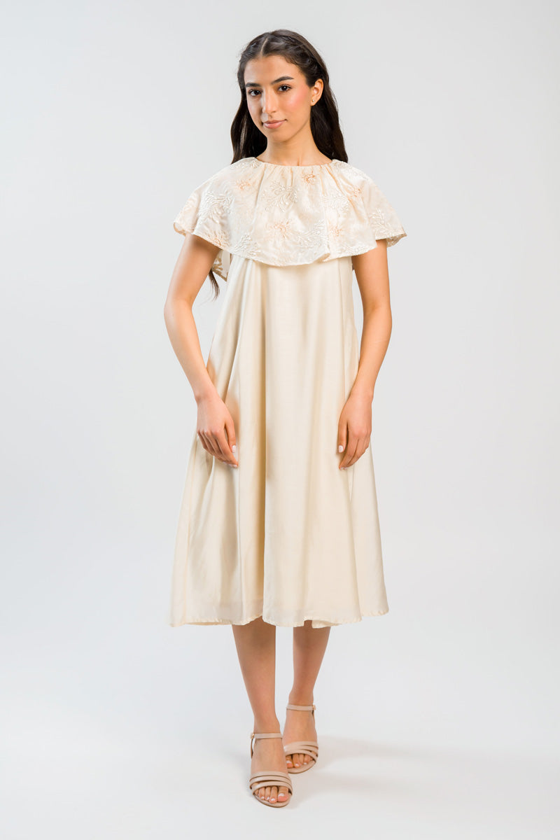 فستان ميدي بقصة انسيابية مريحة، يتميز بتفصيل كاب علوي مطرز يضفي لمسة أنيقة وناعمة على التصميم. يأتي بقصّة واسعة تسمح بحرية الحركة وراحة في الارتداء، مع طول ميدي مناسب للاستخدام اليومي أو المناسبات الهادئة. تصميم متوازن يجمع بين البساطة والتفاصيل الدقيقة لسهولة التنسيق.