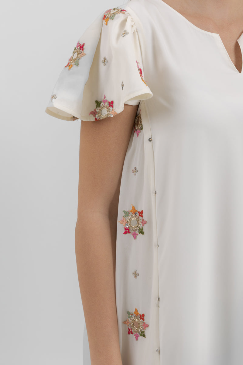 فستان ماكسي بقصة مريحة وتطريز جانبي