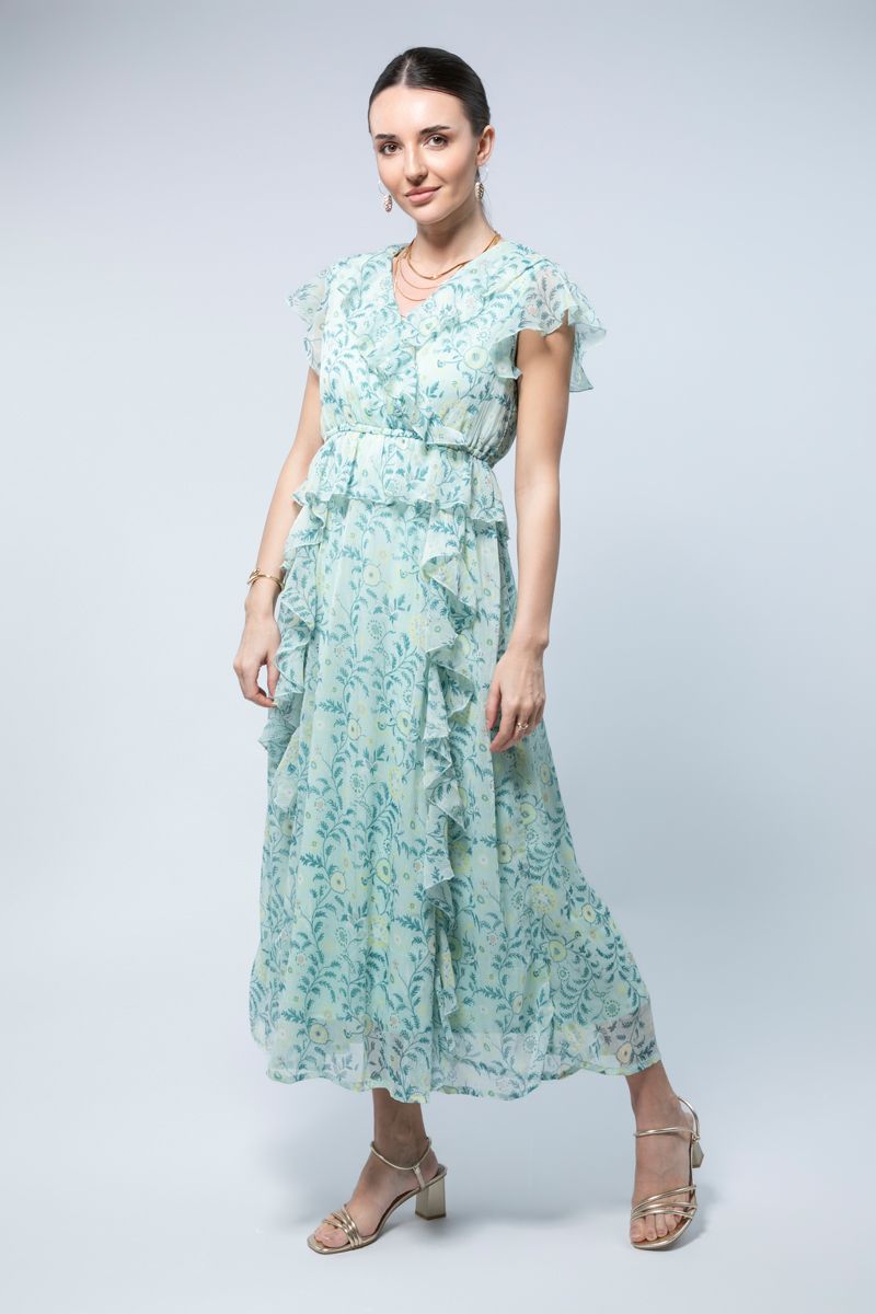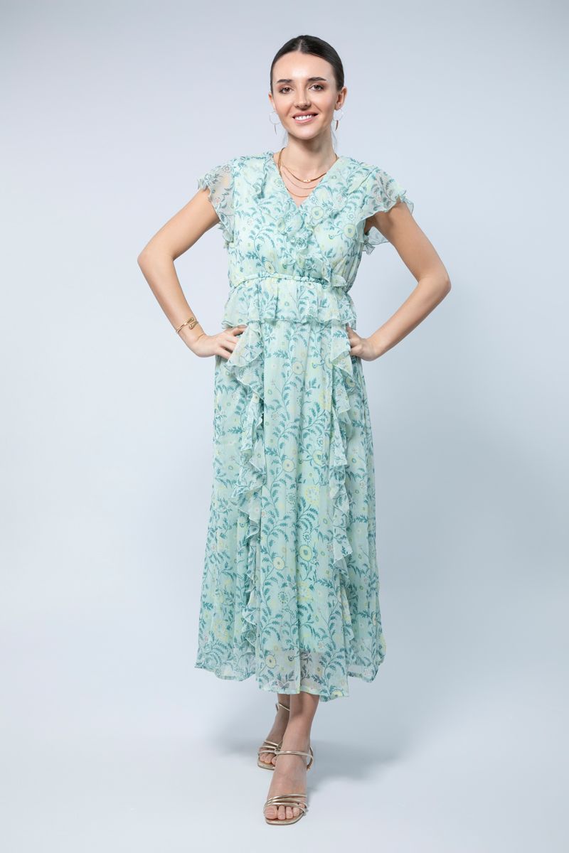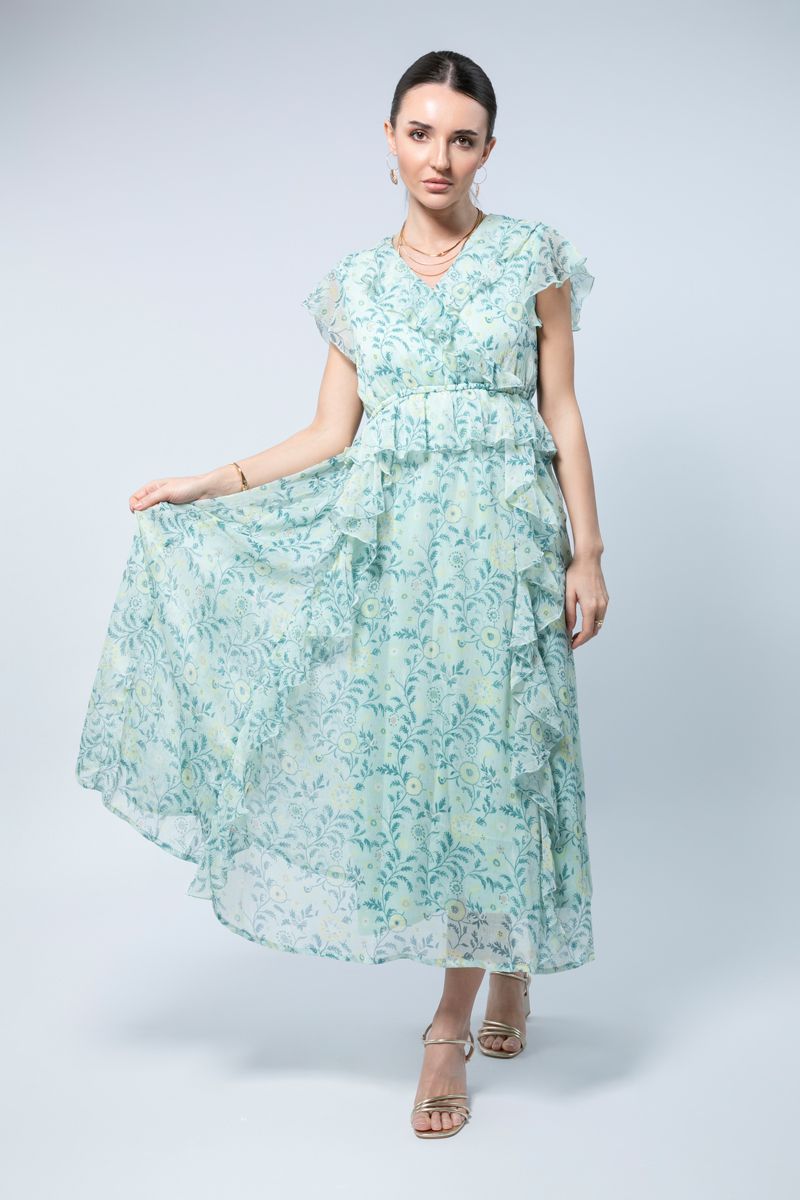 استمتعي بأجواء الصيف مع فستاننا الصيفي الطويل بأكمام قصيرة، المصمم من قماش الشيفون الدقيق الذي ينساب برقة مع كل حركة. يتميز الفستان بنقشة مطبوعة رائعة تجعلك تشعرين بالأناقة والراحة في نفس الوقت. تضيف التفاصيل المزمومة لمسة من الأنوثة، بينما يضمن الطبقة الداخلية المبطنة الراحة والارتداء السلس.
