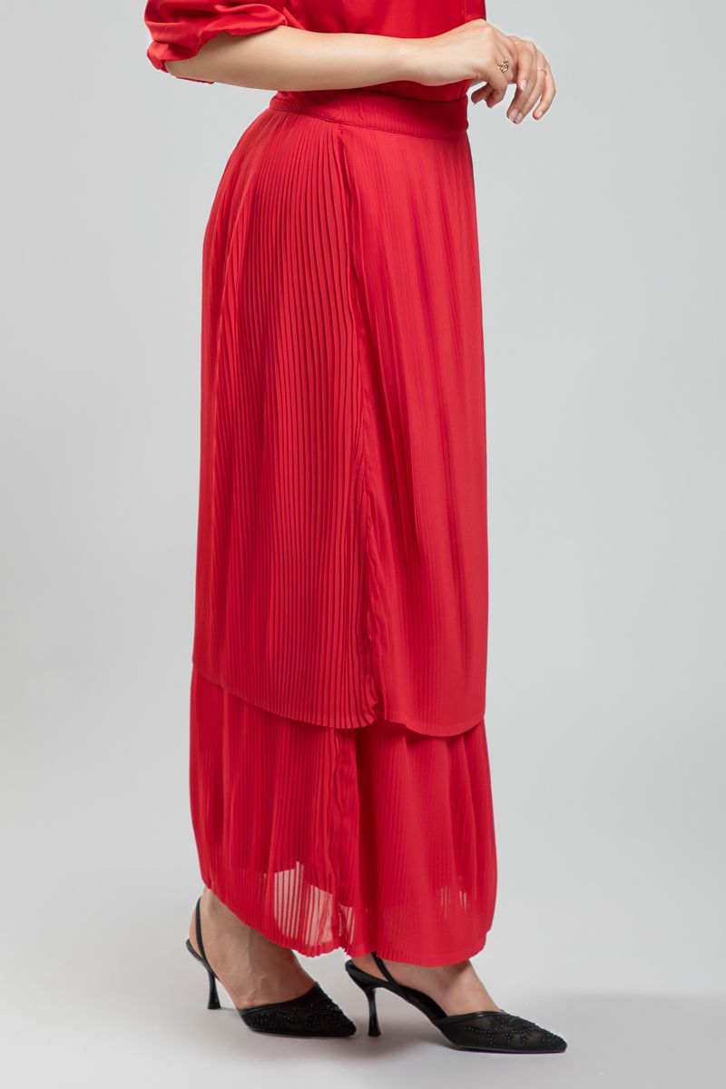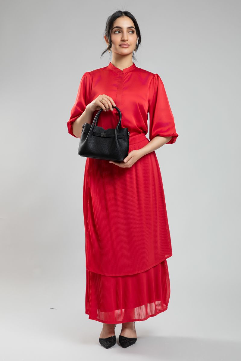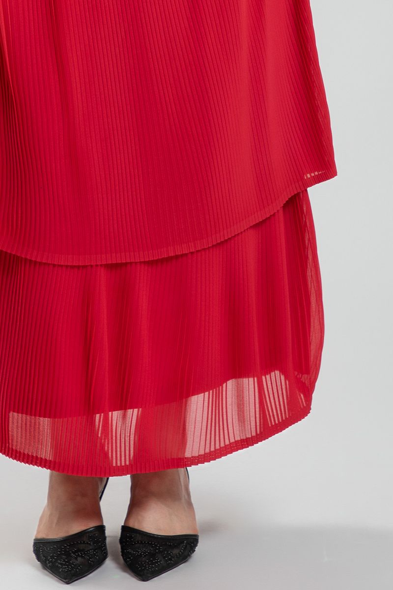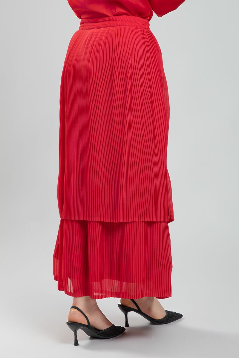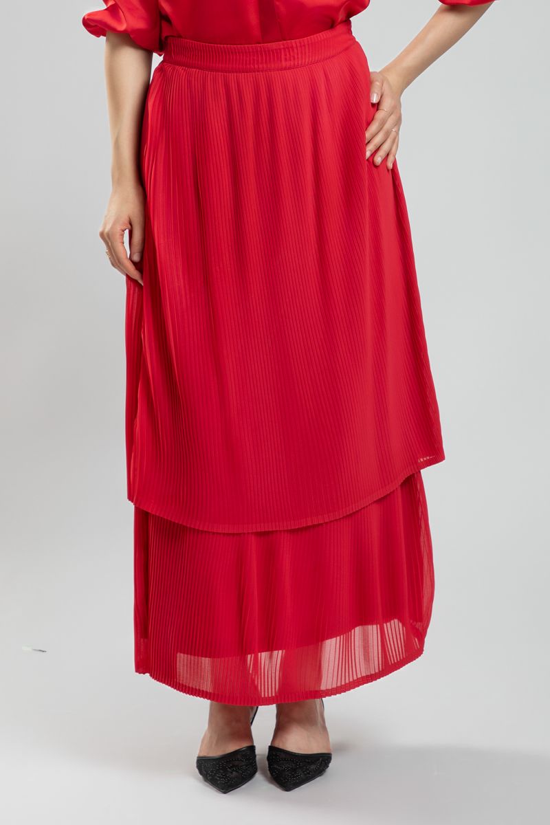 استمتعي بإطلالة أنثوية راقية مع هذه التنورة الماكسي المصنوعة من قماش ناعم ودقيق، بتصميم متعدد الطبقات وطيات تغطي كامل التنورة. يتميز الخصر بمرونة عالية لتوفير راحة مثالية، مما يجعلها خيارًا مثاليًا لإطلالات أنيقة وسهلة.