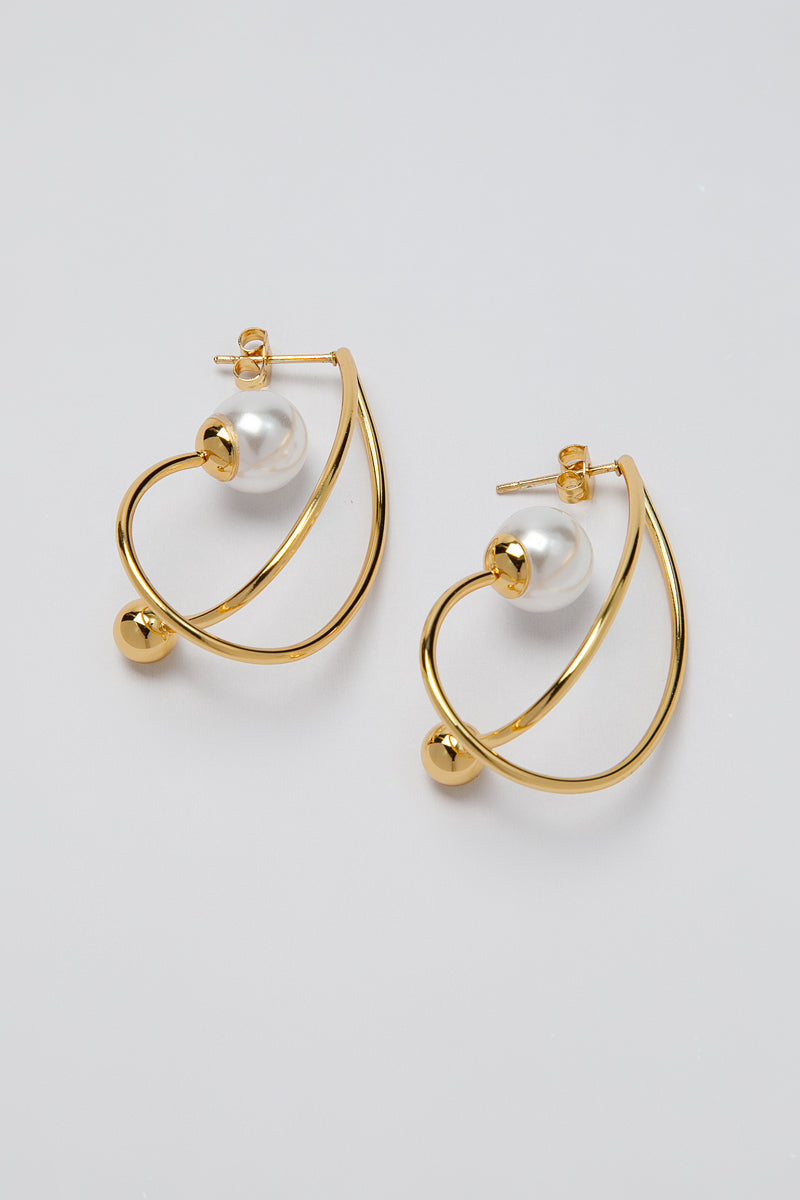 أقراط بتصميم مفتوح يجمع بين الخطوط العصرية ولمسة لؤلؤ ناعمة تتوسط الشكل كنجمة هادئة. مظهر بسيط لكن ذكي، يناسب الإطلالات اليومية والمناسبات الخفيفة من دون أي مجهود درامي زائد. قطعة تقول بهدوء: أنا أنيقة، ولا أحتاج أن أصرخ بذلك.