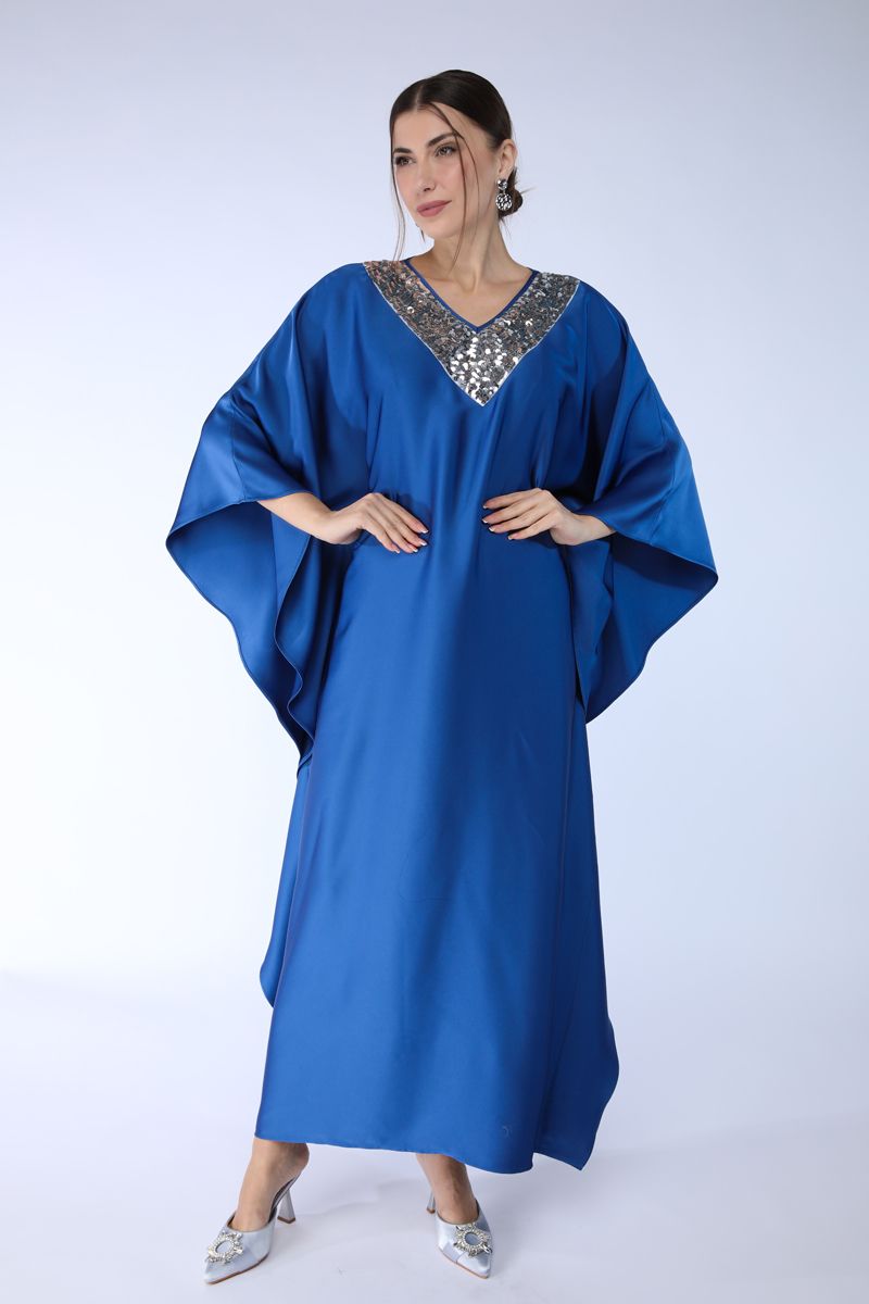 تصميم بستايل قفطان فضفاض واسع وأكمام منسدلة واسعة بقصة كيب