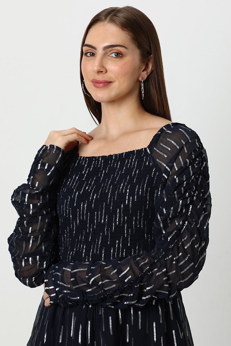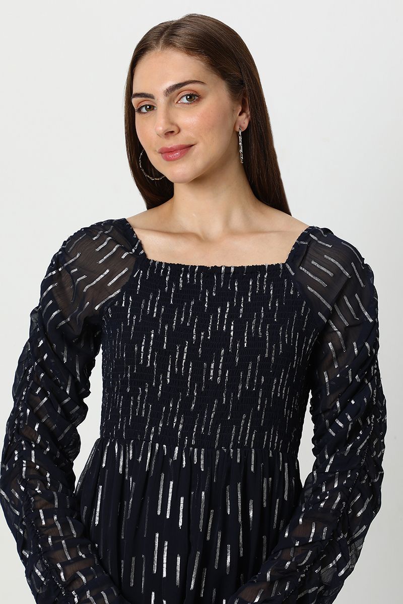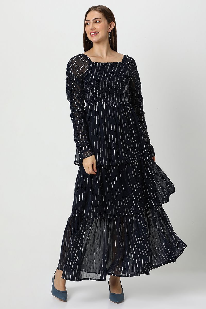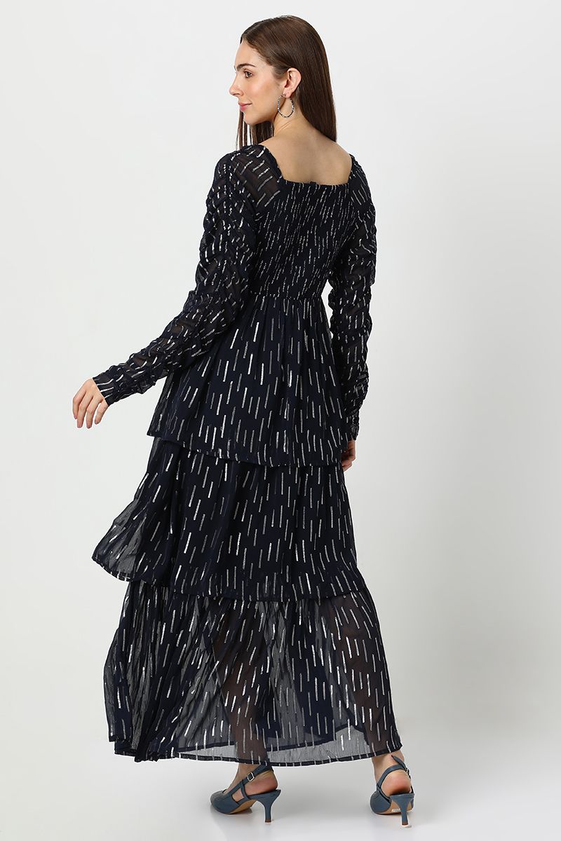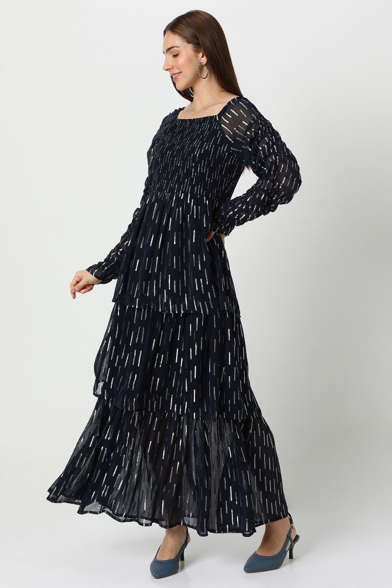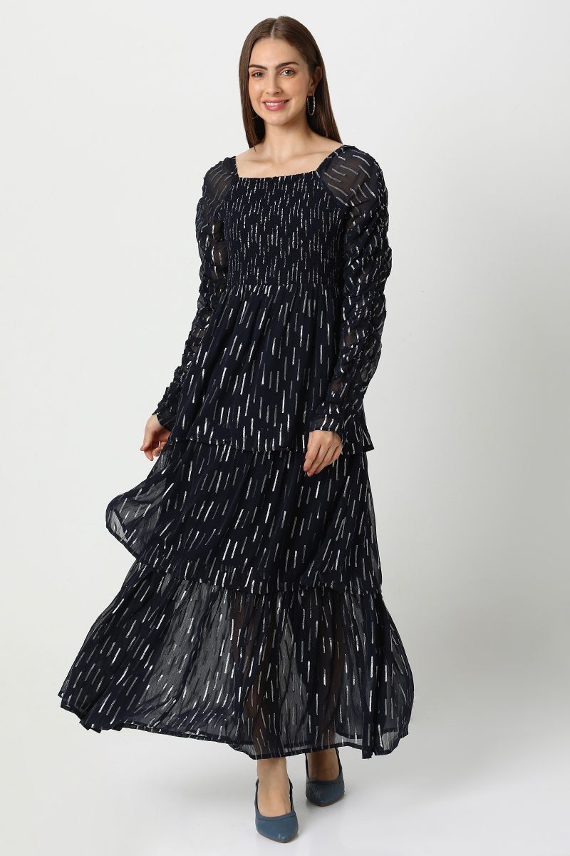 فستان نسائي شيفون طبقات بنقشة ميتاليك