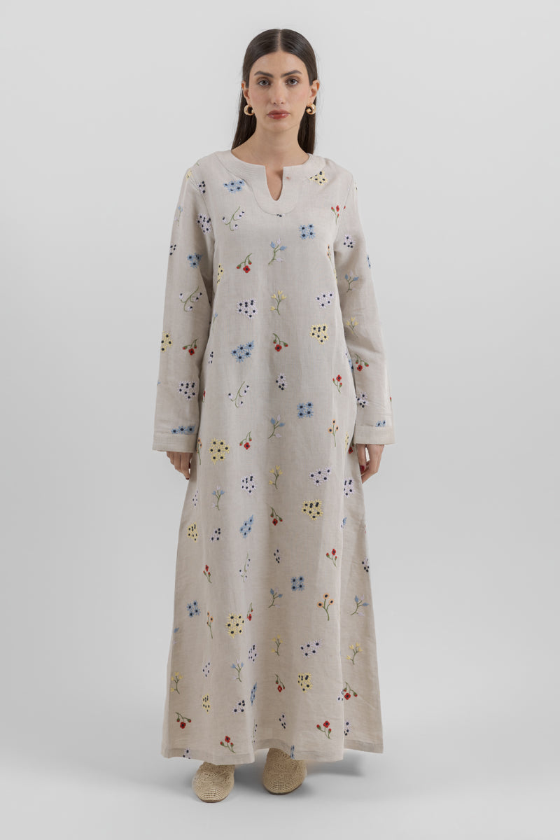 فستان ماكسي بنقشة ناعمة وأكمام طويلة