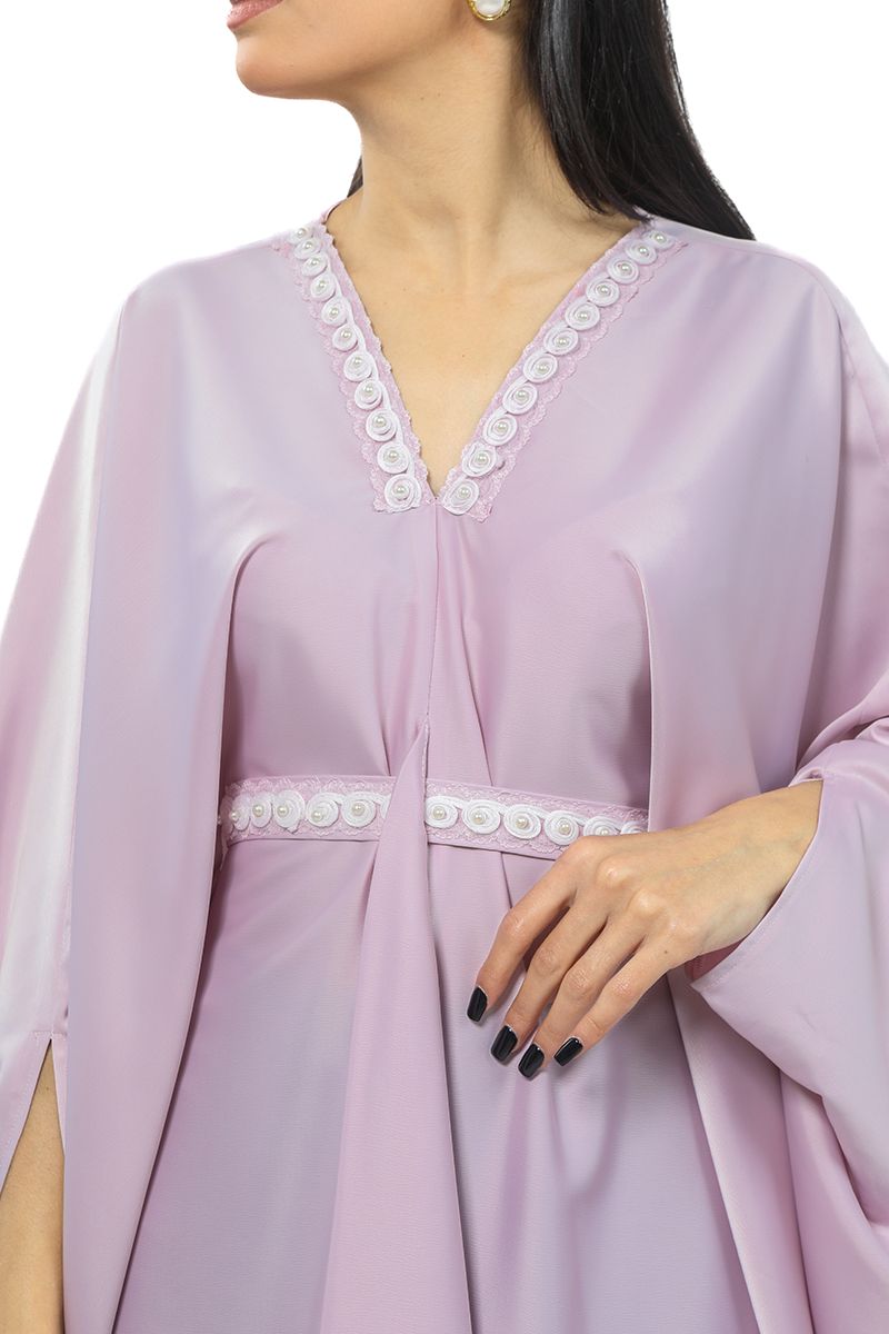 مزين بنمط تفاصيل تطريز وخرز على الخصر ومن الجهة الأمامية