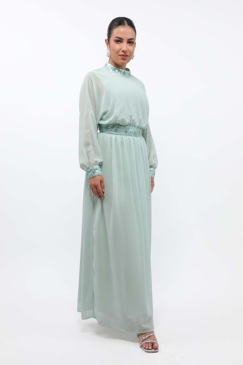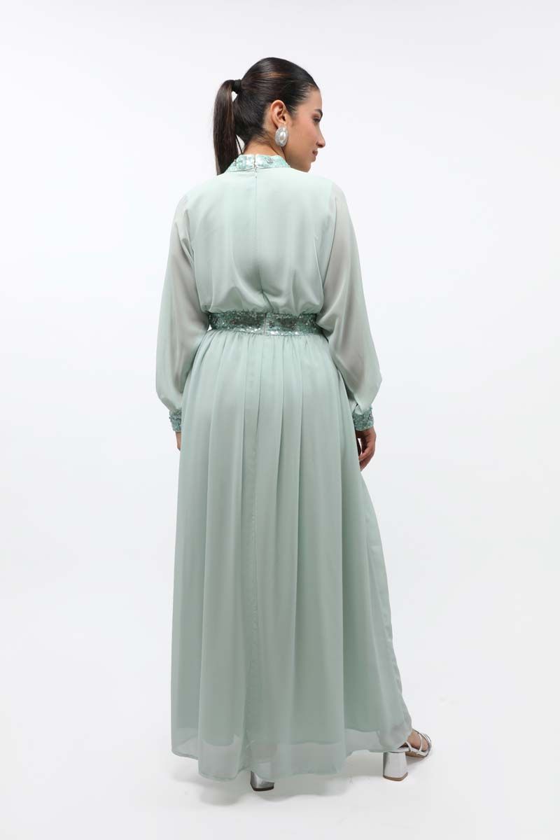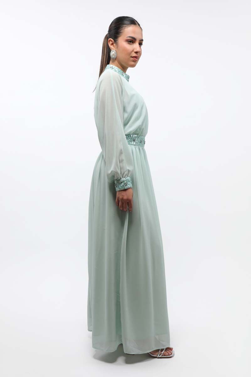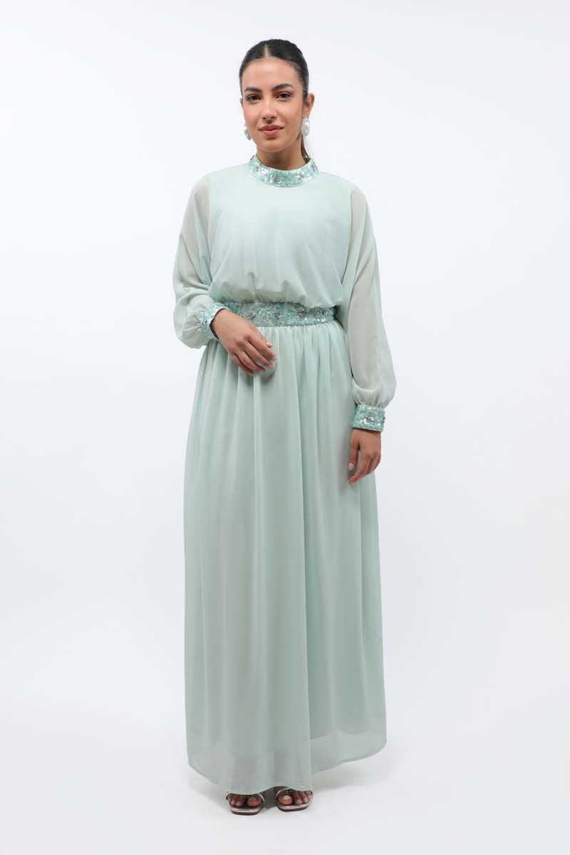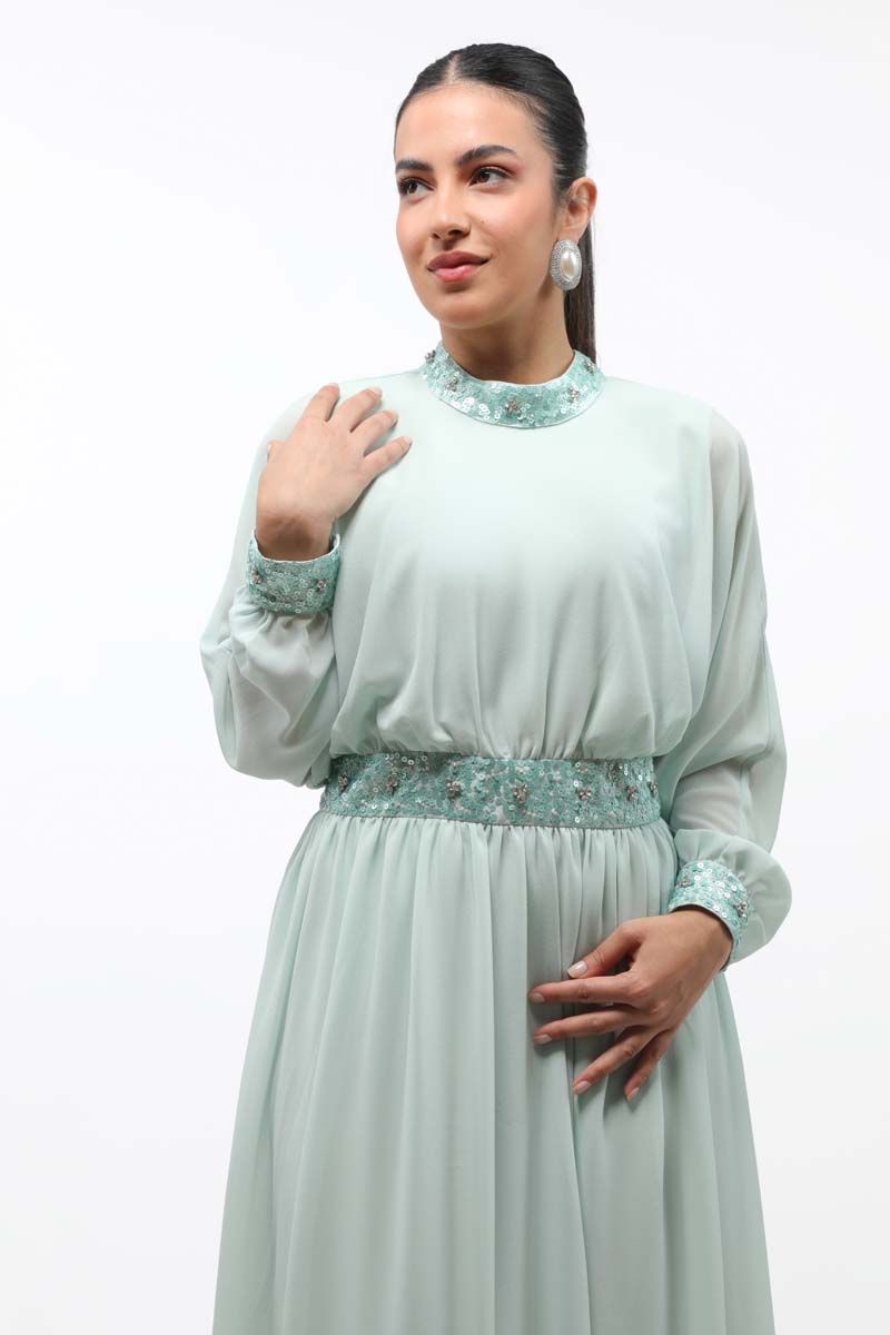 مزين بتفاصيل ترتر على الأكمام، الياقة والخصر