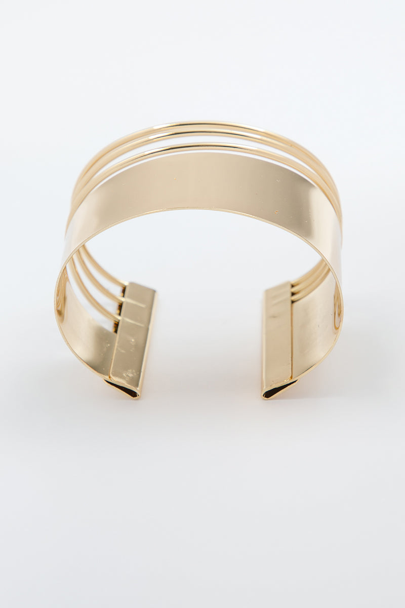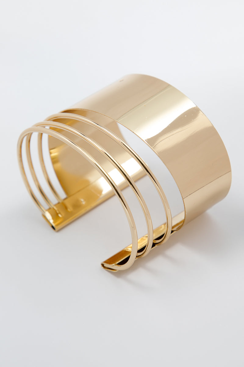 سوار لافت يجمع بين الجرأة والهدوء في قطعة واحدة. شريط عريض بلمعة ناعمة يلتقي بثلاث حلقات رفيعة بتصميم مفتوح يمنح مظهرًا عصريًا وخفيفًا على المعصم. مناسب للإطلالات اليومية أو للمناسبات التي تقررين فيها فجأة أن تكوني أنيقة من غير جهد ظاهر.