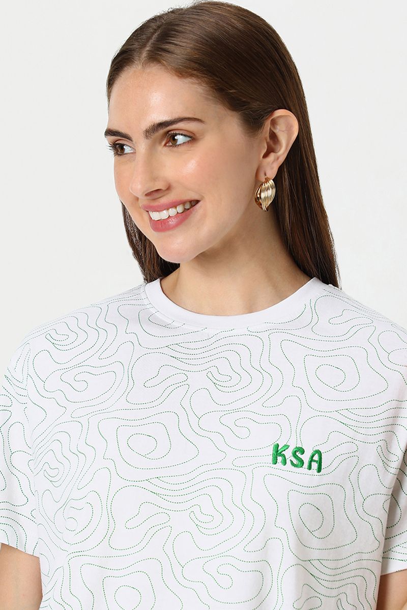 تيشيرت نسائية بطبعات لليوم الوطني بتفاصيل تطريز