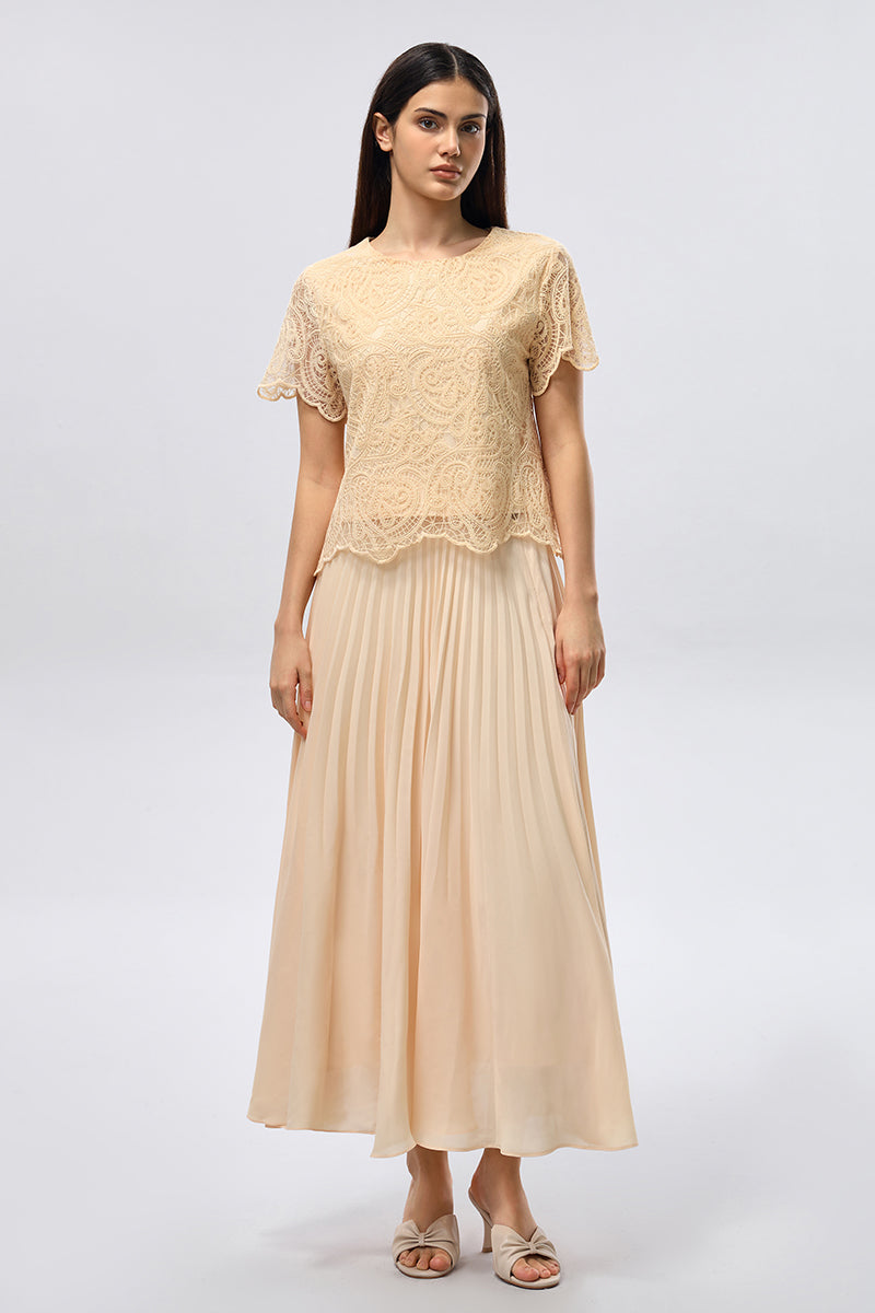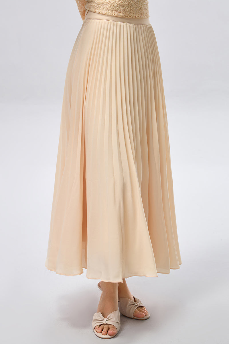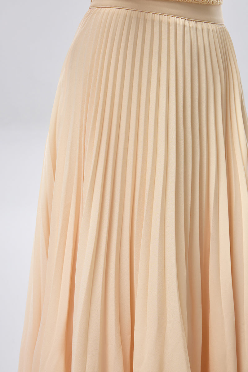 تنورة بطول كامل تتميز بكسرات دقيقة تمنحها حركة ناعمة وانسيابية أثناء الارتداء. صُممت بقماش خفيف ينسدل بسلاسة، مع حزام خصر مريح يوفر ثباتاً وملاءمة مثالية. قطعة متعددة الاستخدامات تناسب الإطلالات اليومية الراقية والمناسبات الأنيقة.