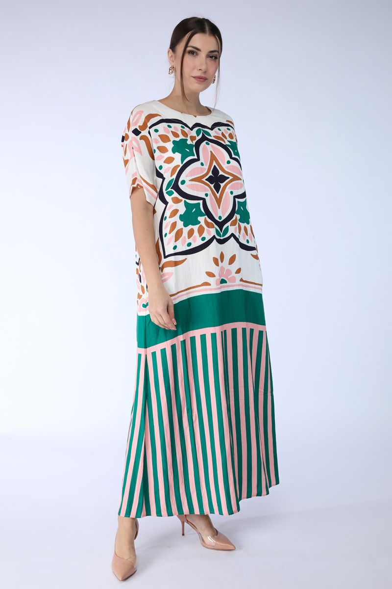 مزين بنمط طبعات متعدد الألوان على كامل التصميم