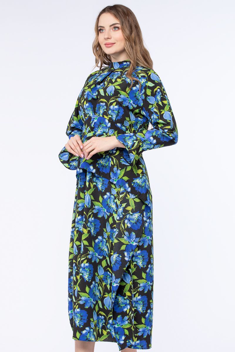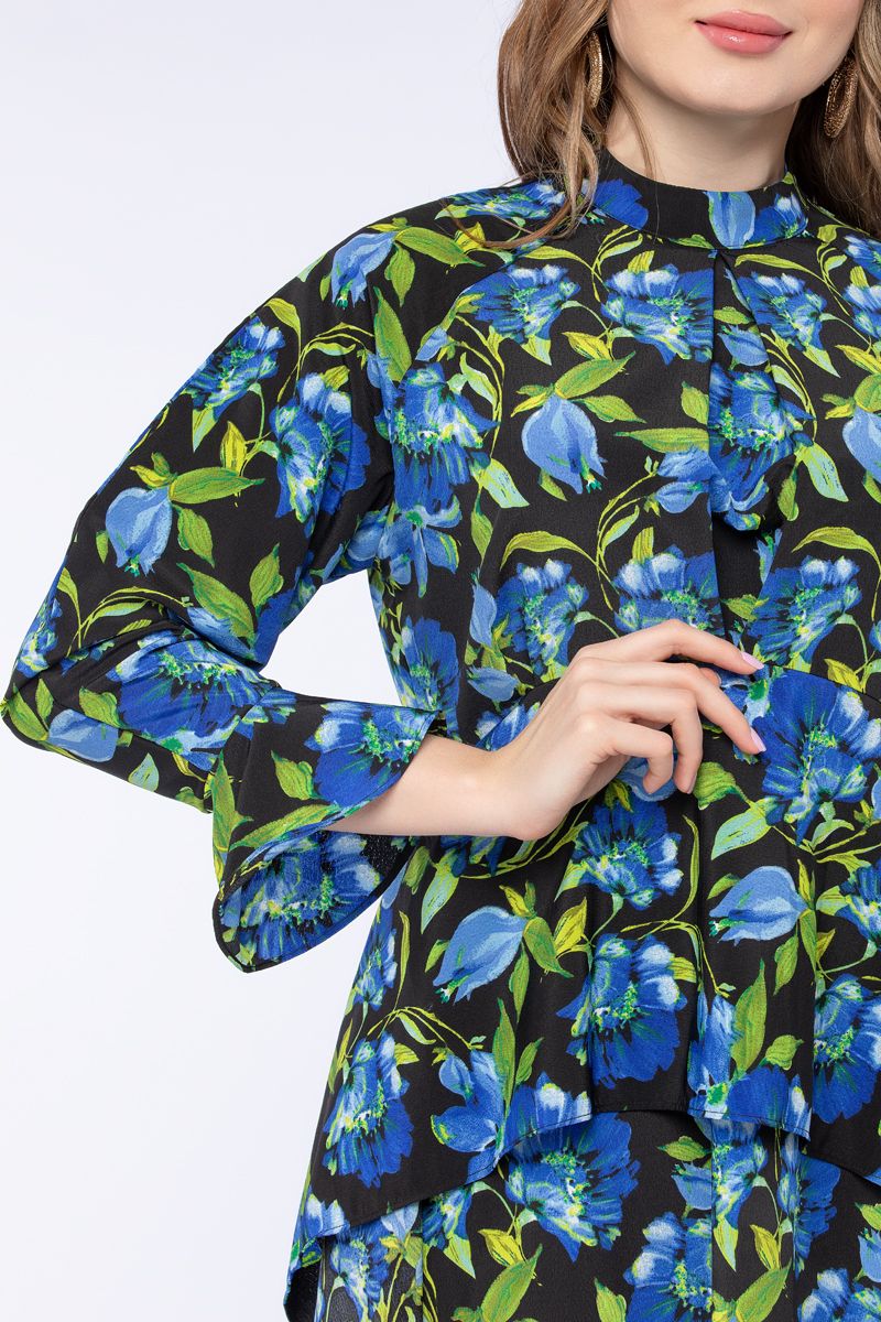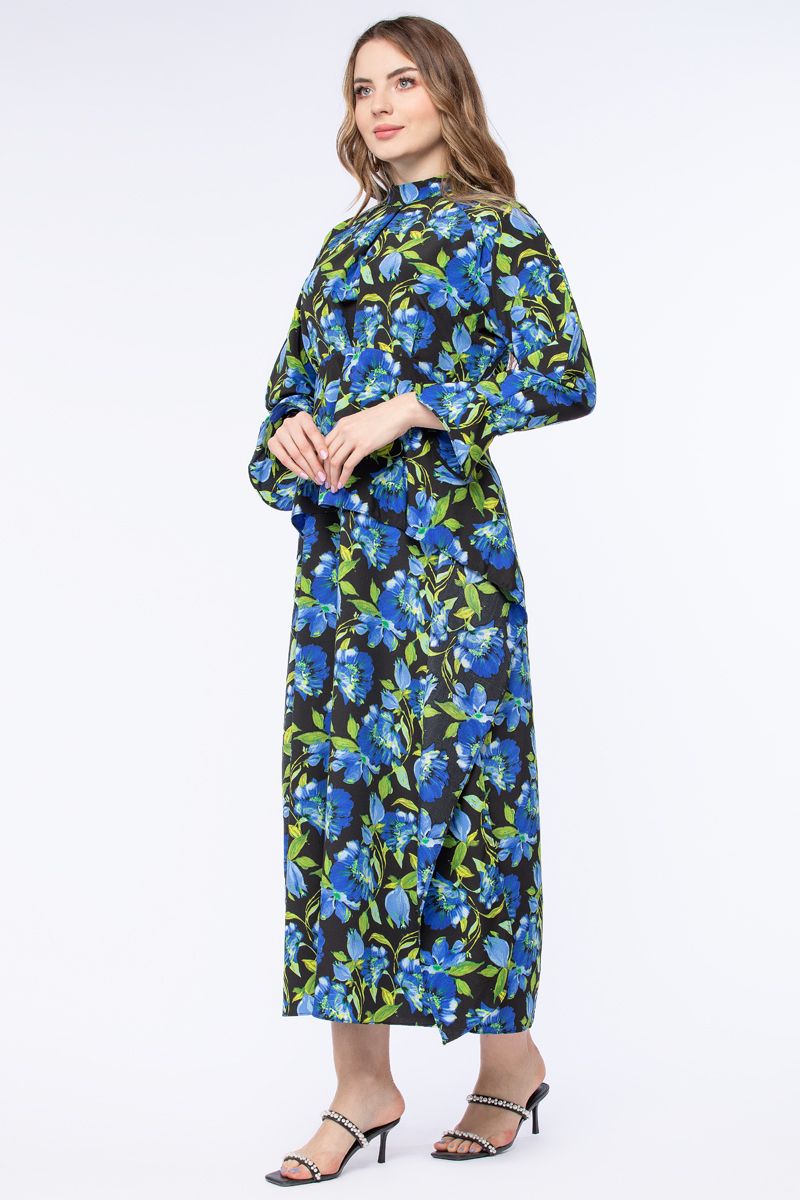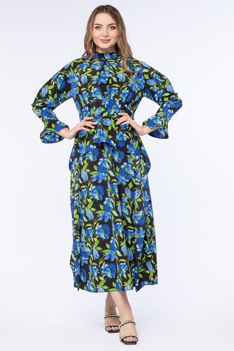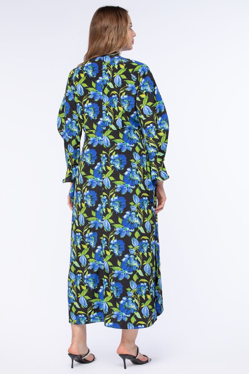 مزين بنمط طبعات موردة متعدد الألوان على كامل التصميم وكشكش على الخصر والأكمام