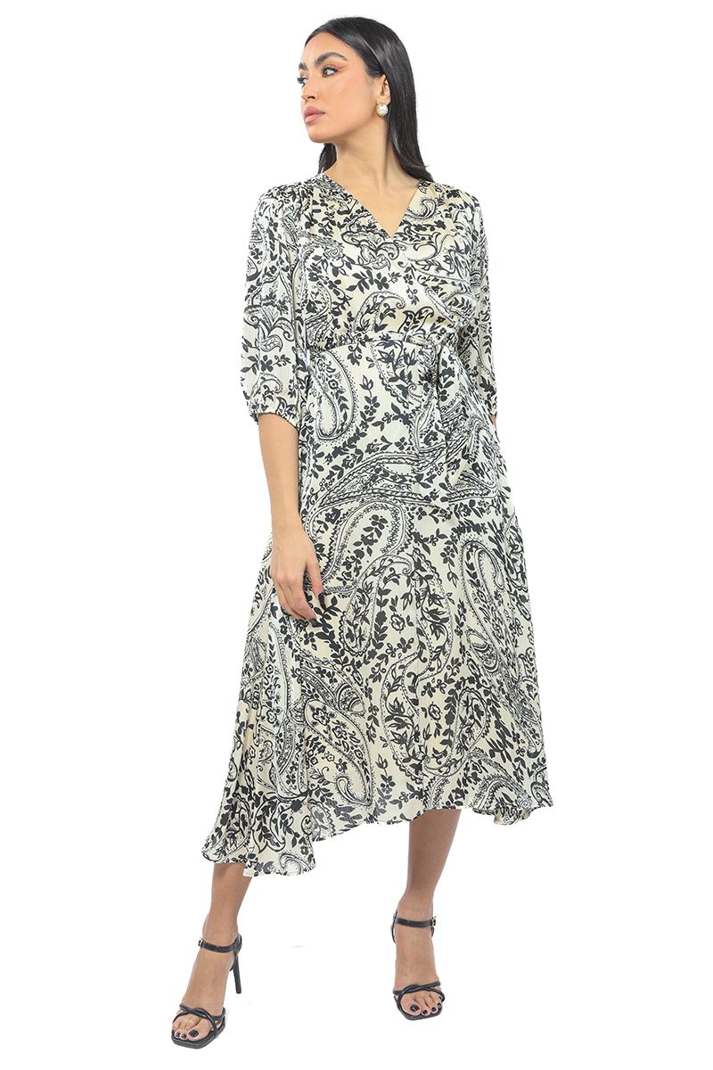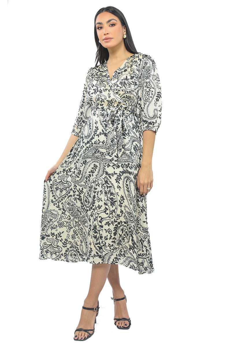 فستان نسائي طويل بأكمام ثلاثة أرباع
