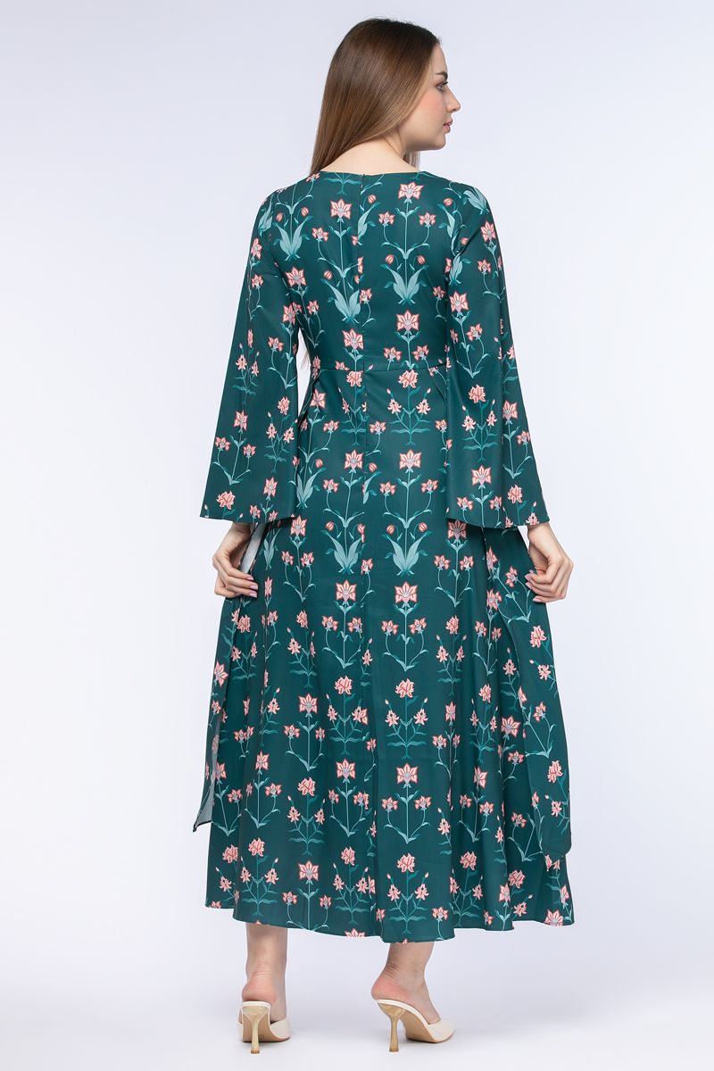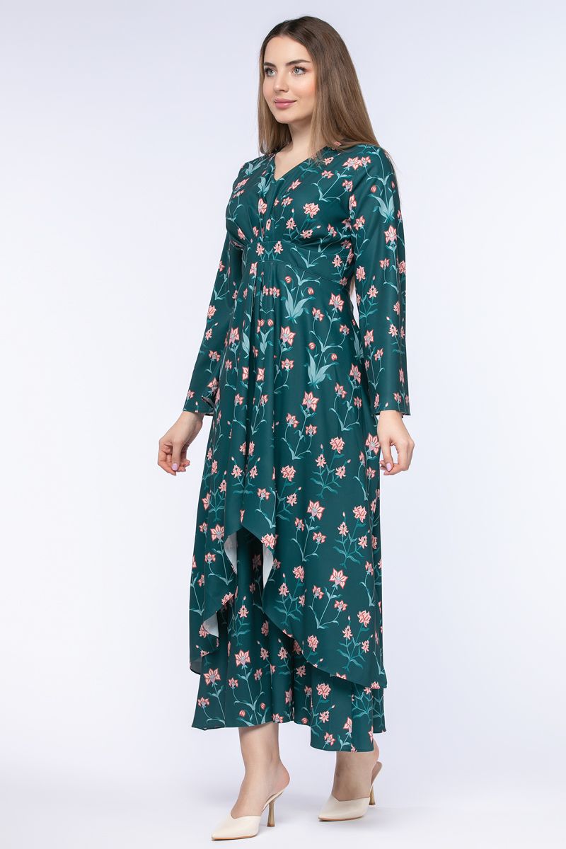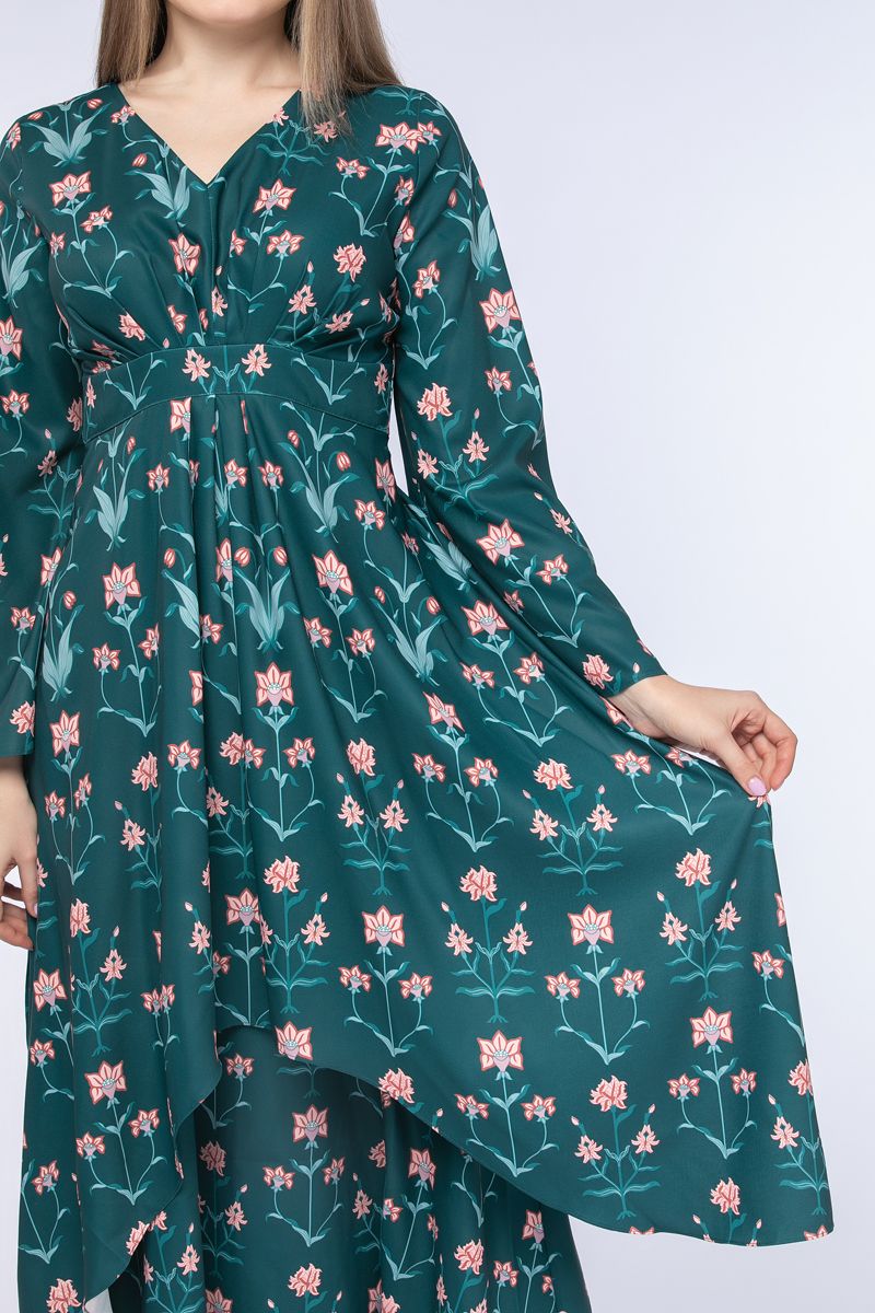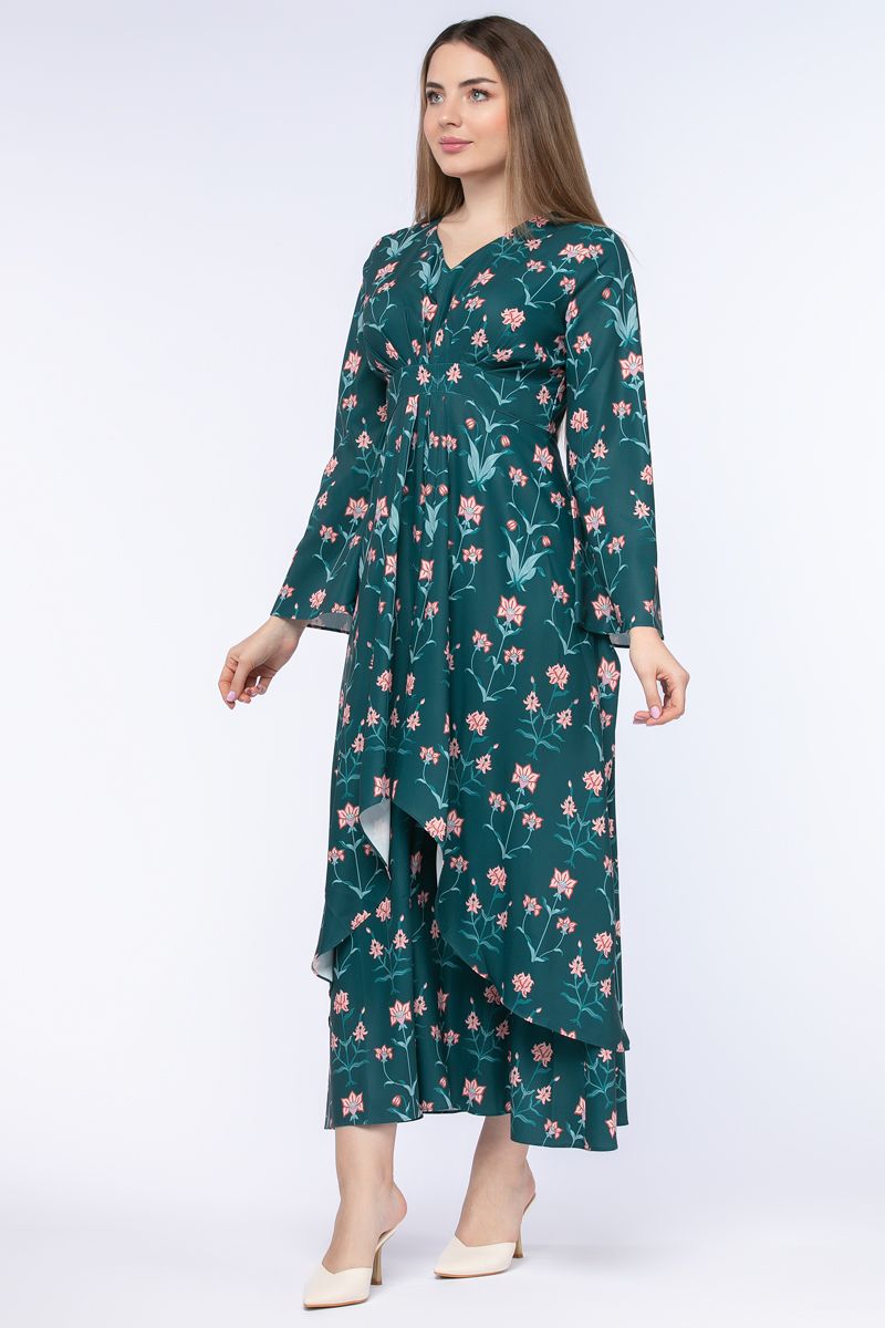 مزين بنمط طبعات موردة متعددة الألوان على كامل التصميم