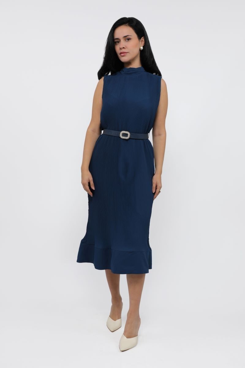 نمط ذو لون موحد مزين بنمط كسرات مضلعة رفيعة على كامل التصميم وتفاصيل كشكش من الجهة السفلية