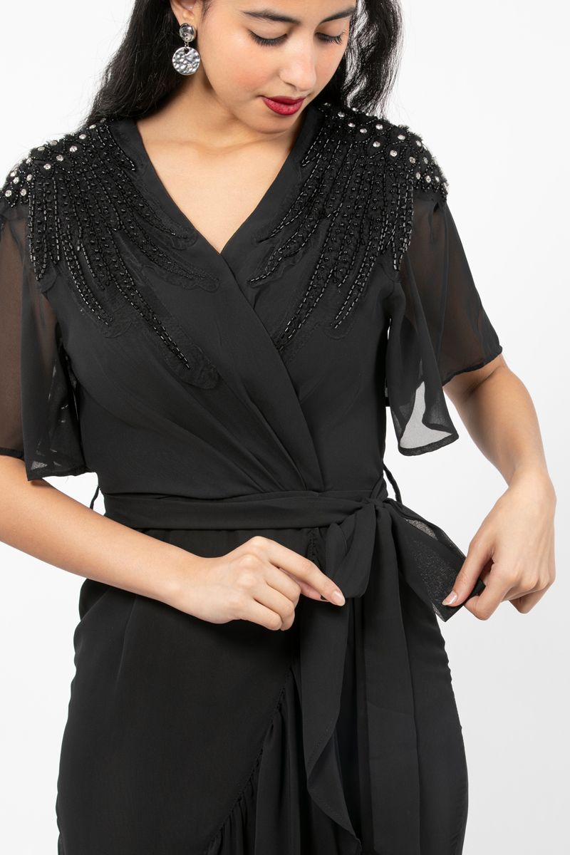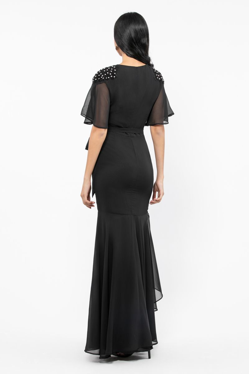نمط ذو لون موحد مزين بنمط تفاصيل خرز وترتر على الجهة الأمامية