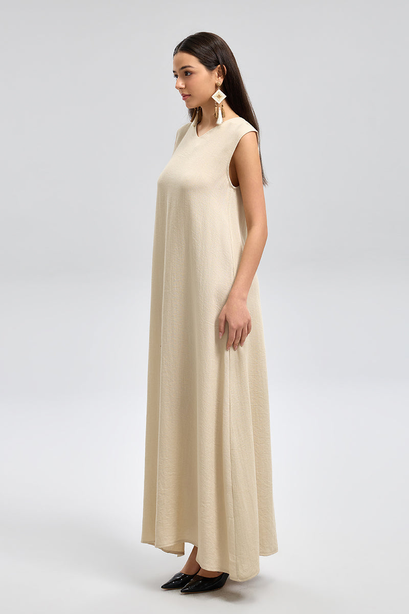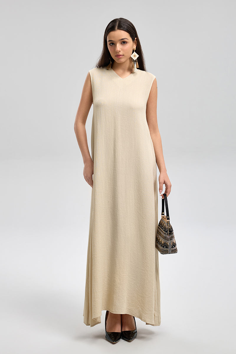 فستان طويل بلا أكمام بقصة انسيابية