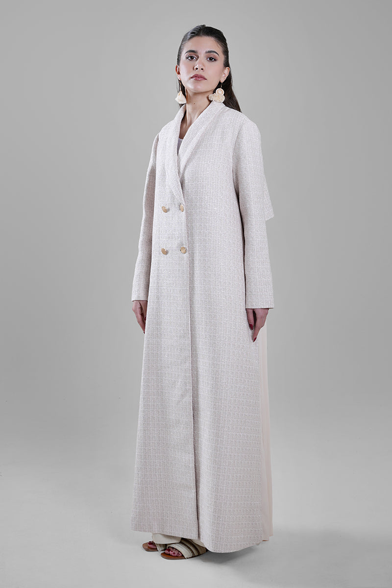 عباية بنسيج منقوش وتفصيل كسرات خلفي