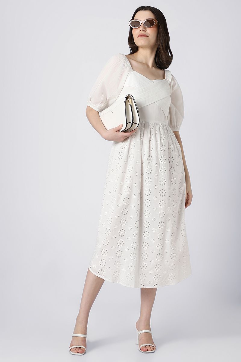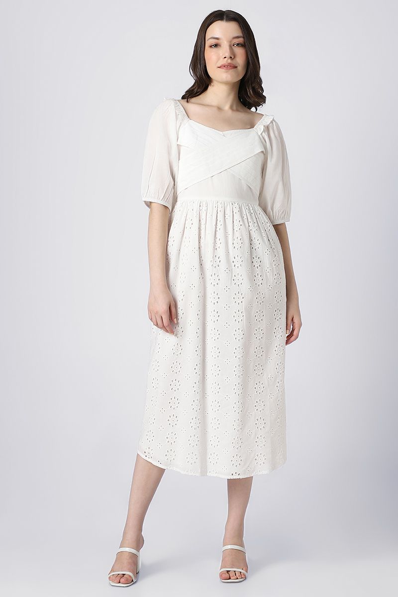 فستان نسائي تحت الركبة بأكمام قصيرة