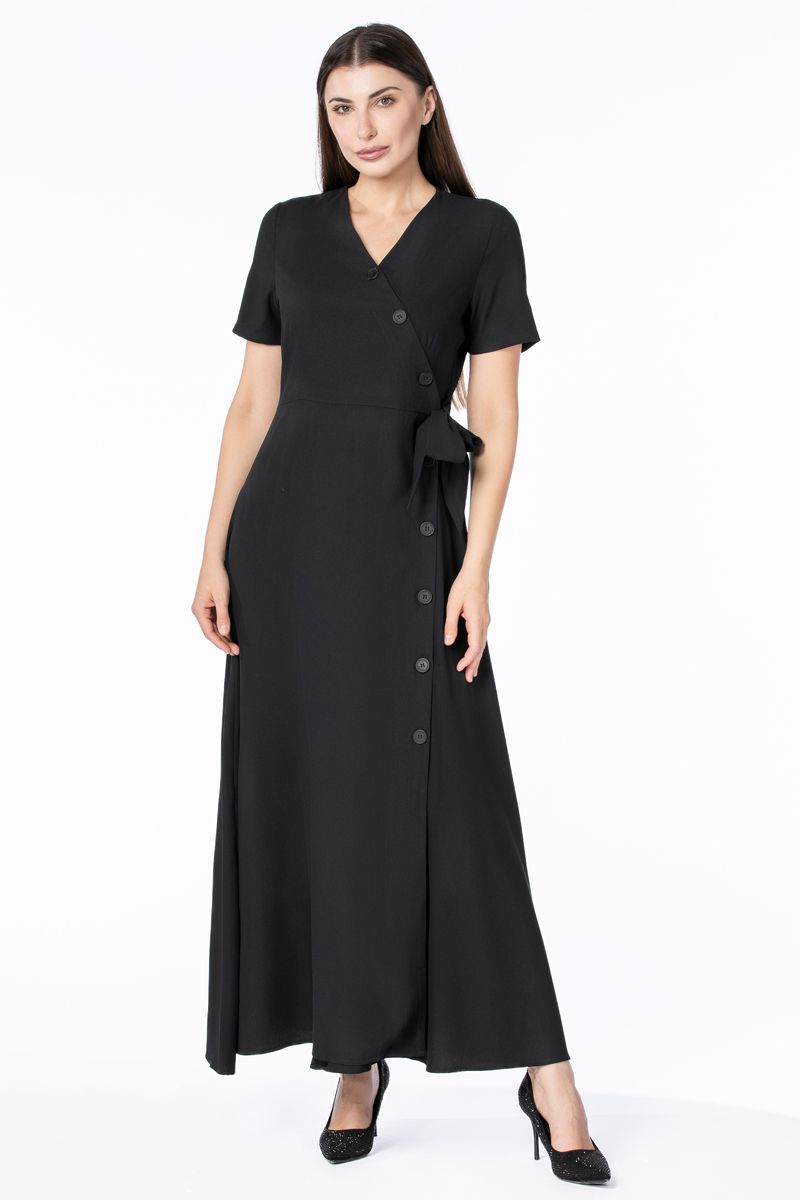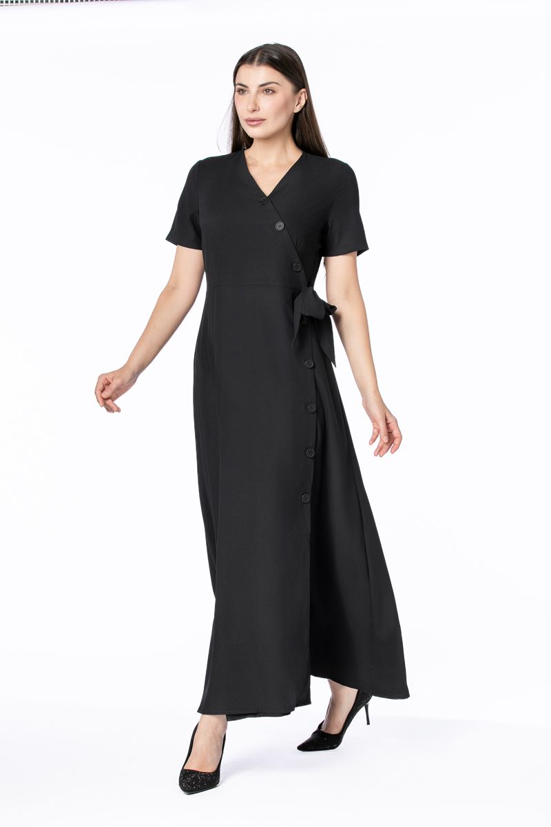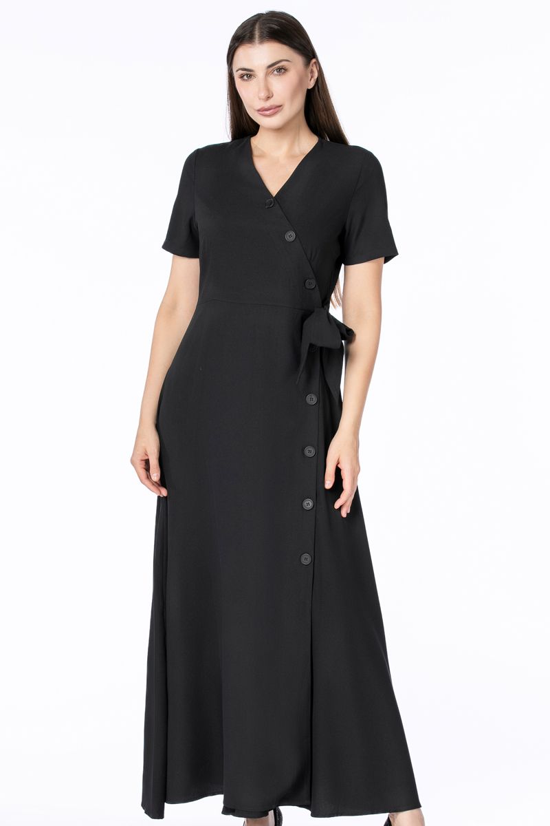 فستان نسائي ماكسي بنمط لف مع أزرار
