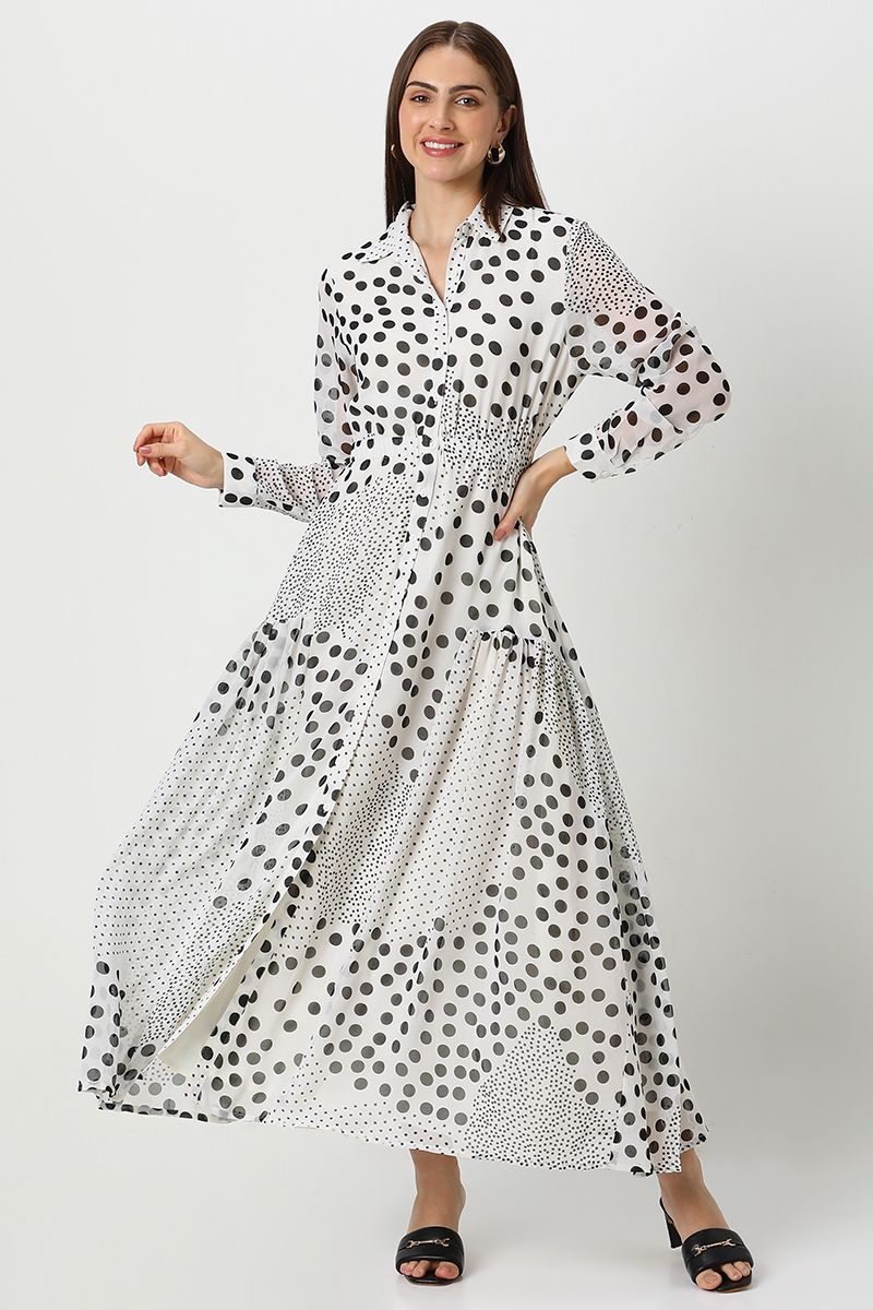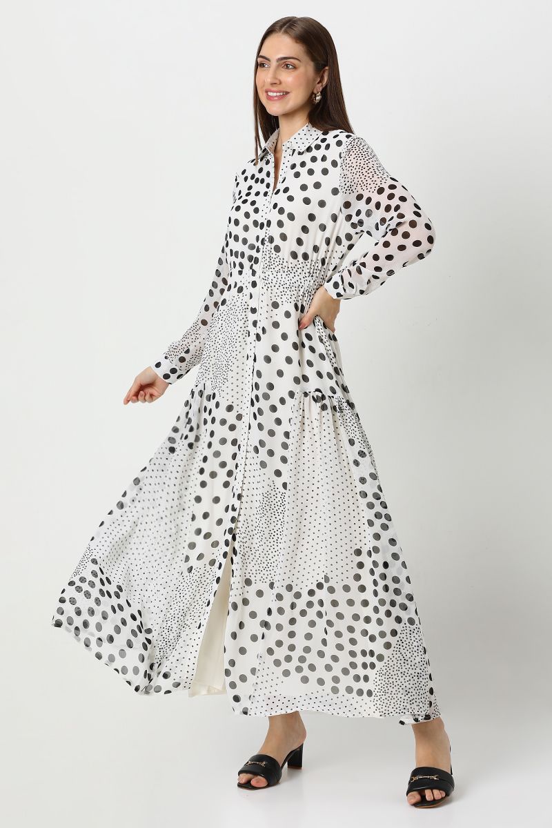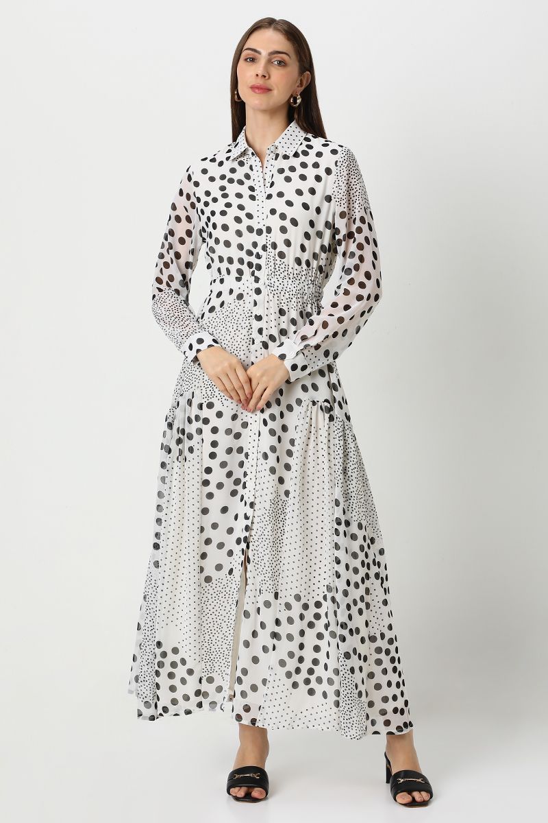 فستان نسائي ماكسي بنمط قميص وبطبعات