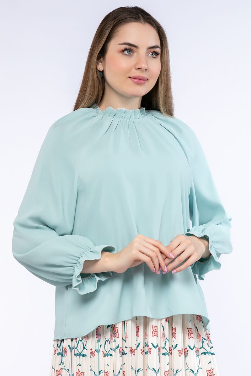 مزينة بتفاصيل كشكش على حاشية الأكمام والياقة