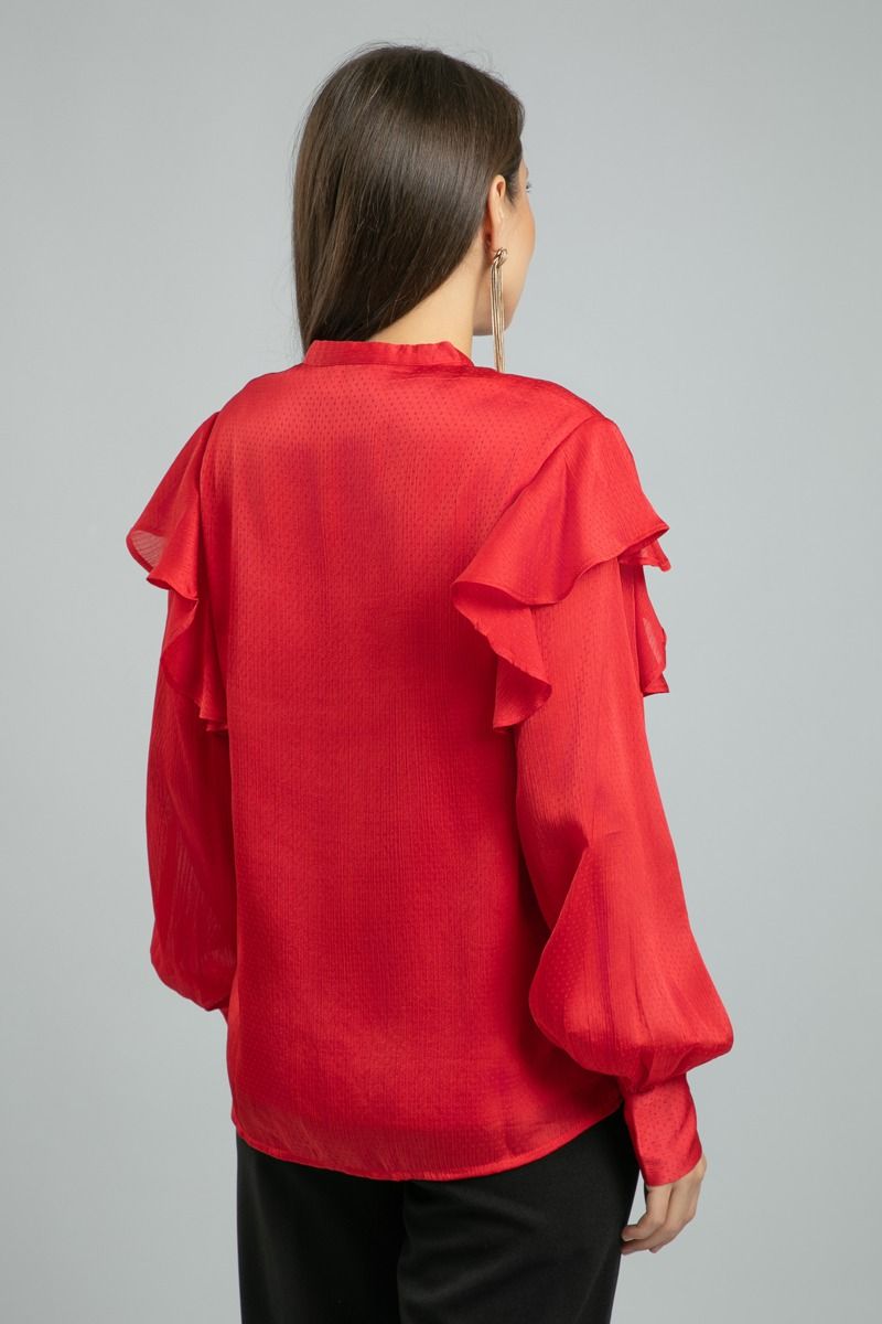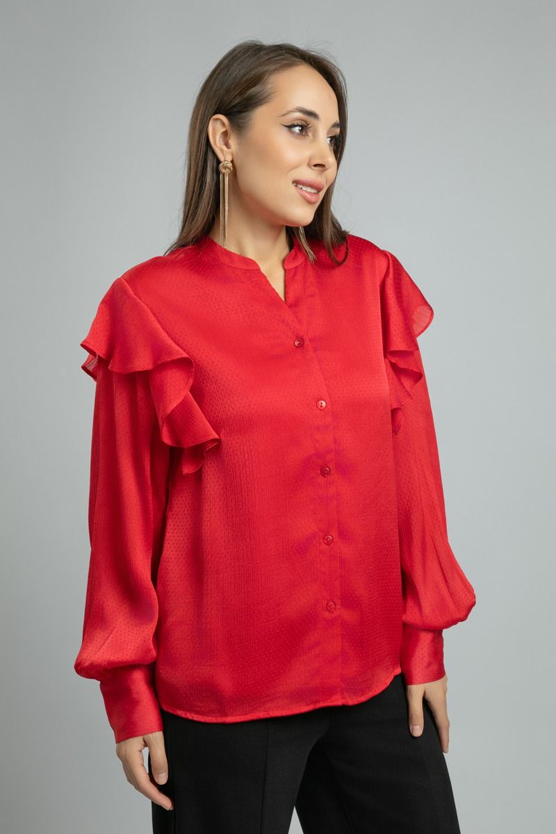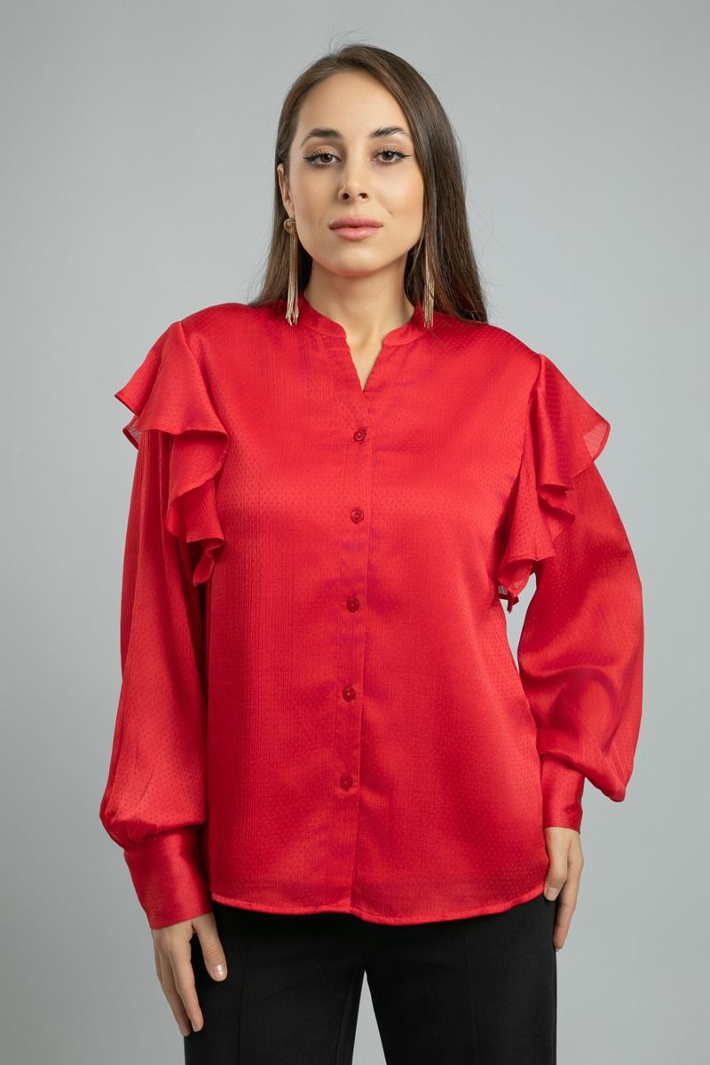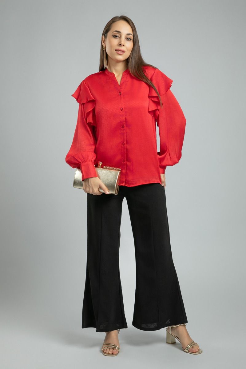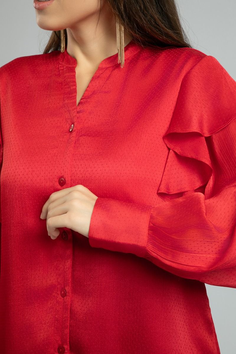 امنحي إطلالتك لمسة أنثوية أنيقة مع هذا القميص النسائي بأكمام طويلة، المصمم من خامة بنمط منقوش بلون موحد يعكس الرقي والبساطة. تضفي تفاصيل الكشكش على الأكمام حركة ونعومة مميزة، بينما تتيح الأزرار الأمامية إغلاقًا عمليًا وسهلًا. ياقة على شكل V تعزز من جاذبية التصميم وتمنحك مظهراً أنيقًا يناسب مختلف المناسبات.